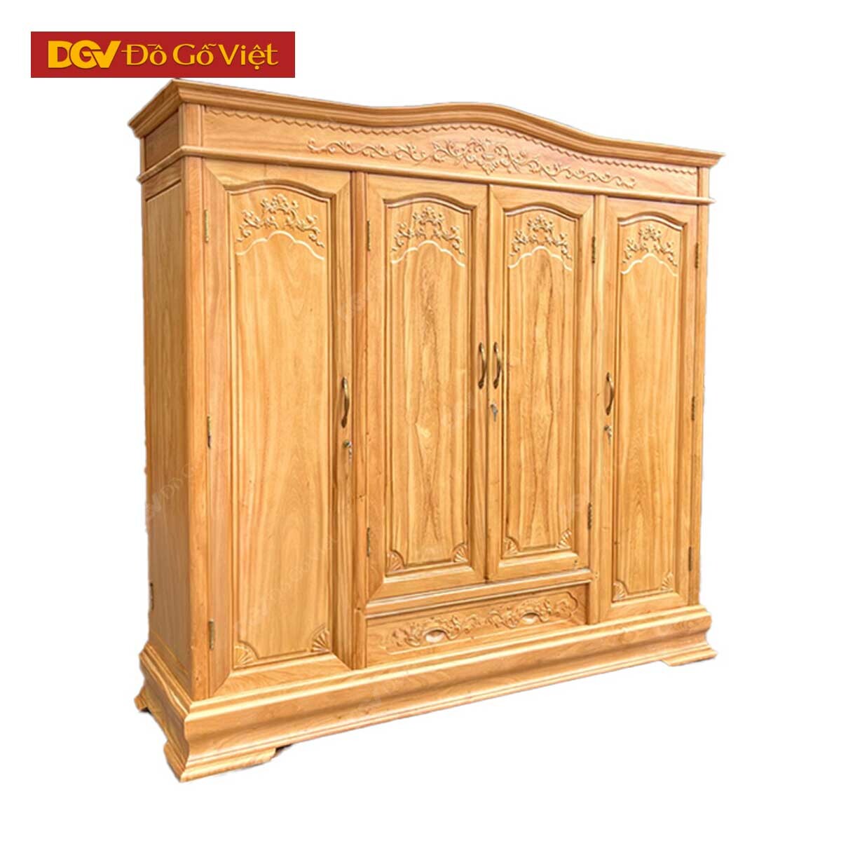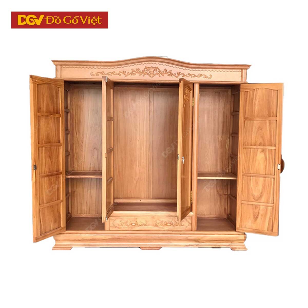 Tủ Quần Áo Gỗ Gõ Đỏ Tự Nhiên 4 Cánh Mở Đẹp Giá Rẻ
