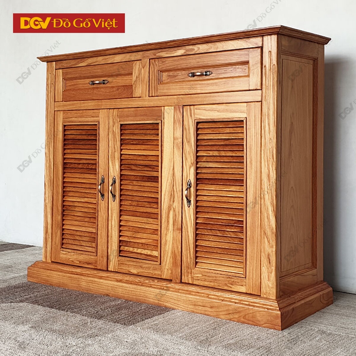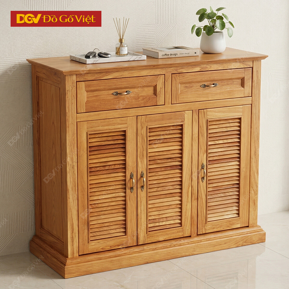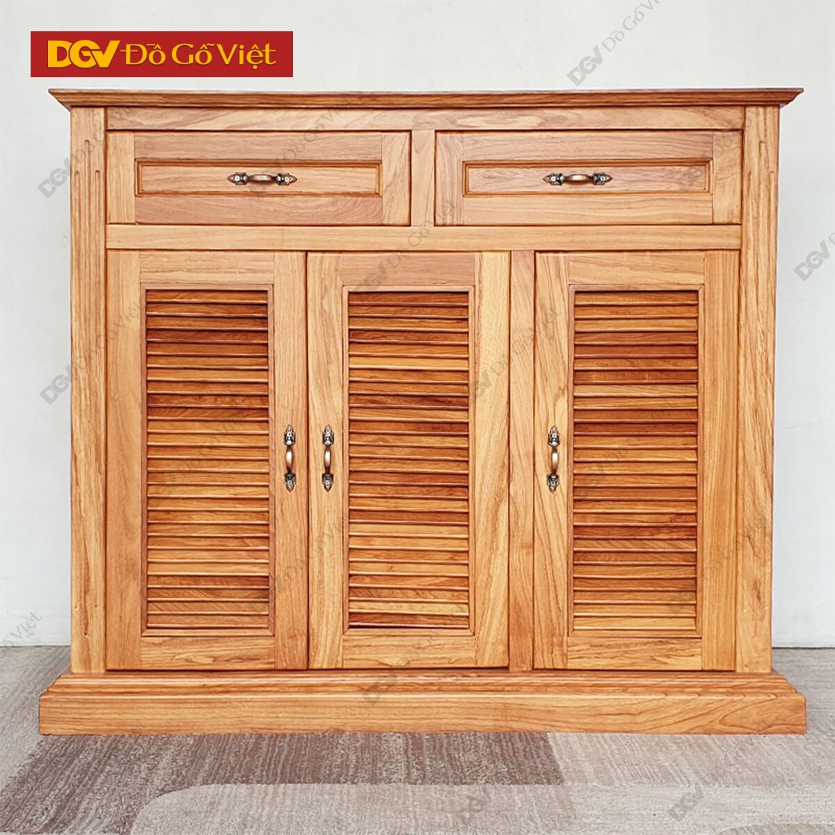 Tủ giày gõ đỏ giá rẻ được chế tác có tổng thể hình khối chữ nhật vững chãi, chắc chắn với kết cấu liền mạch, khối gỗ đồng đều nhau. Thiết kế cửa mở với ngăn tủ ngang truyền thống dễ dàng sử dụng không chỉ cho người lớn mà đối với cả trẻ em. Các ngăn tủ được phân bố kích thước hợp lý tận dụng đối đa không gian tủ và đảm bảo tiết kiệm diện tích.
