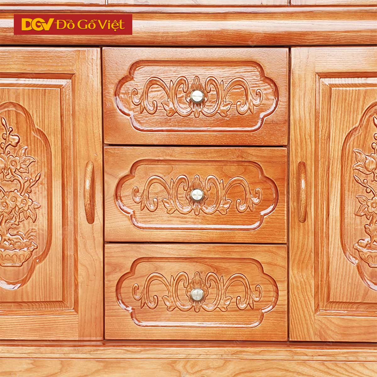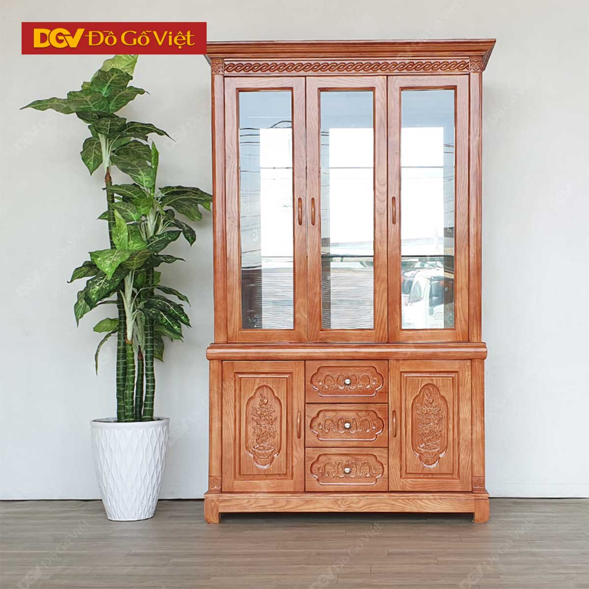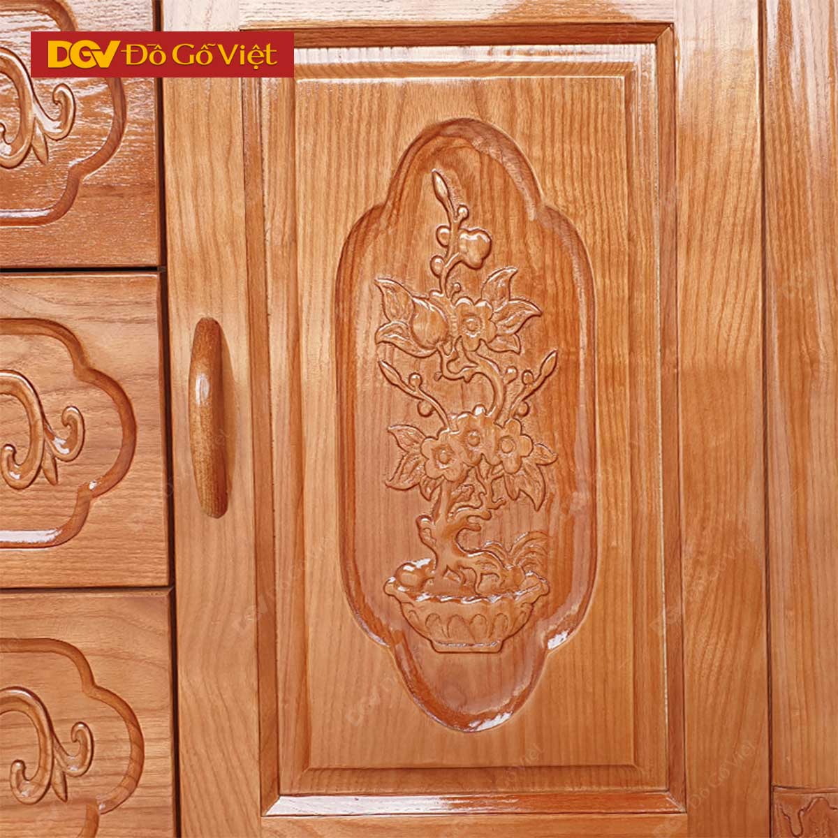 • Tủ ly gỗ được chạm trổ khá đơn giản với những hoa văn đẹp ấn tượng, những bông hoa nở được chạm đều trên cánh tủ tạo nên nét đẹp hấp dẫn cho sản phẩm. Kết hợp thêm những vân gỗ sồi mộc với gam màu vàng độc đáo, rất thích hợp với những khách hàng yêu thích phong cách nội thất đơn giản, chú trọng nhiều đến vẻ đẹp tự nhiên của chất liệu gỗ.
