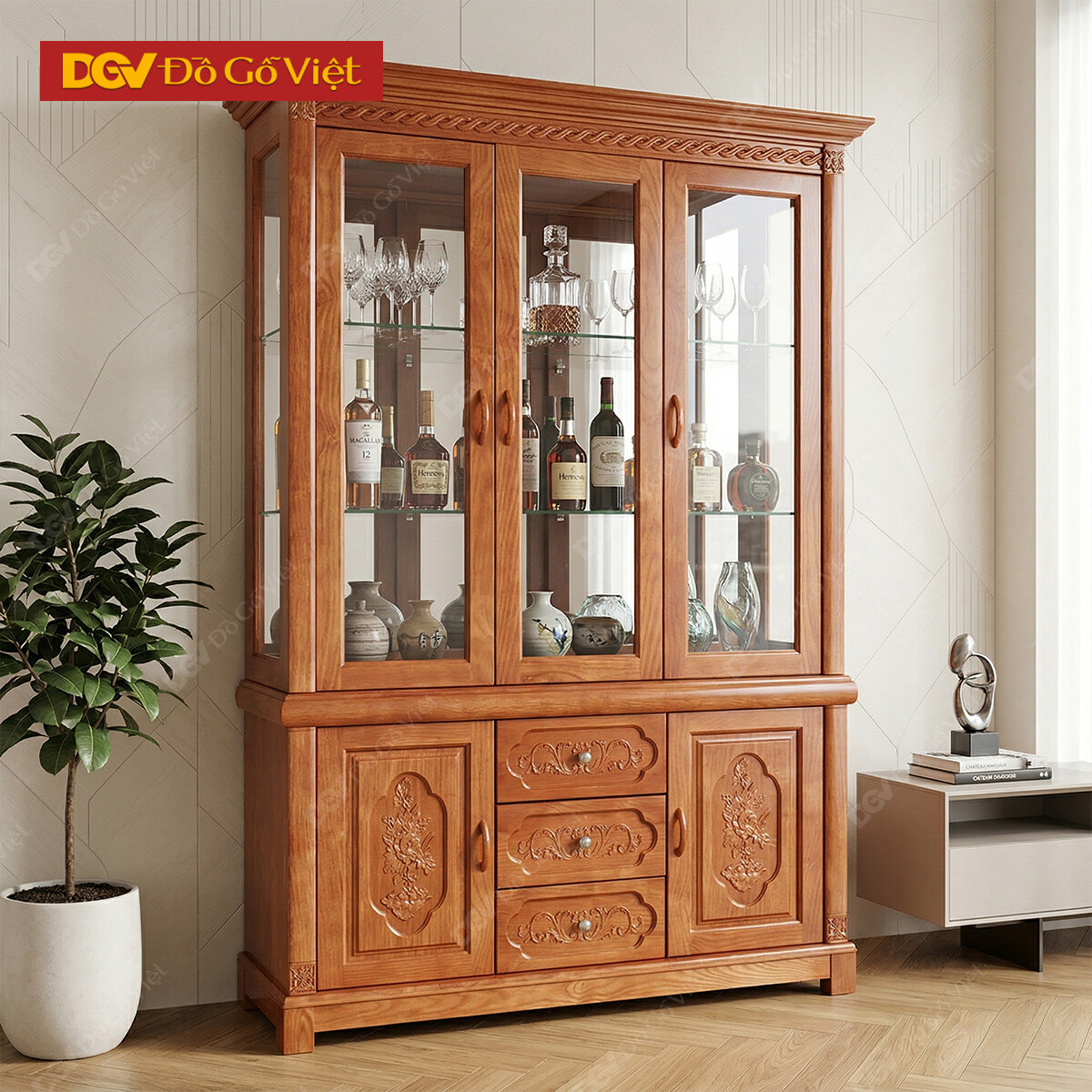Tủ Để Ly và Rượu Gỗ Tự Nhiên Sồi Nga Đẹp Giá Rẻ
