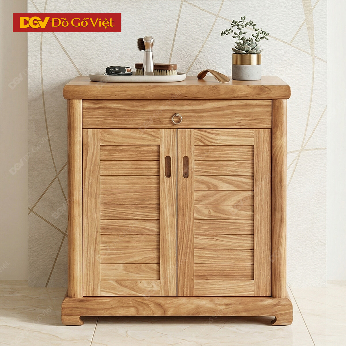 Tủ Đựng Giày Dép Bằng Gỗ Hương Xám Tự Nhiên 2 Cánh Nhỏ Gọn