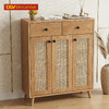 Tủ Giày Dép Gỗ Tự Nhiên Kết Hợp Mây Đan Chân Cao Đẹp 2026