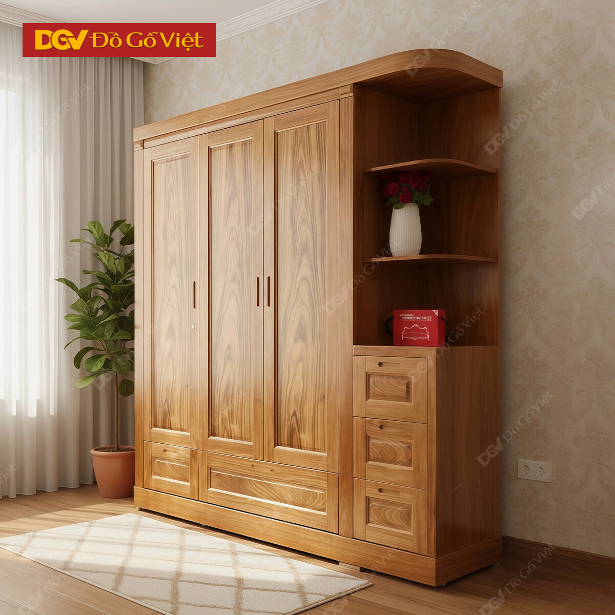 Tủ Để Quần Áo Gỗ Hương Nhóm 1 Đẹp Giá Rẻ 4 Cánh Mở