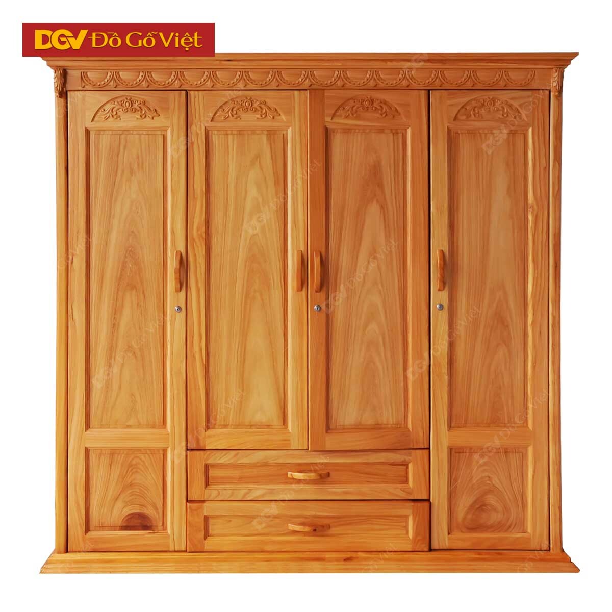 Tủ Quần Áo Gỗ Gõ Đỏ Tự Nhiên 4 Cánh Mở Đẹp Giá Rẻ