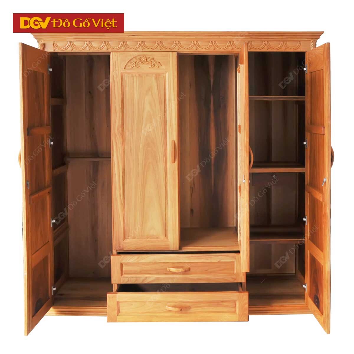 Tủ Quần Áo Bằng Gỗ Vân Gõ 4 Cánh Phù Hợp Cho Gia Đình Nhỏ