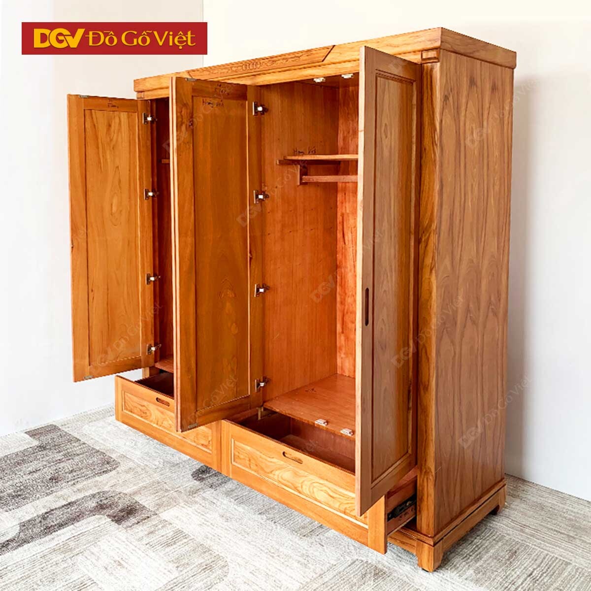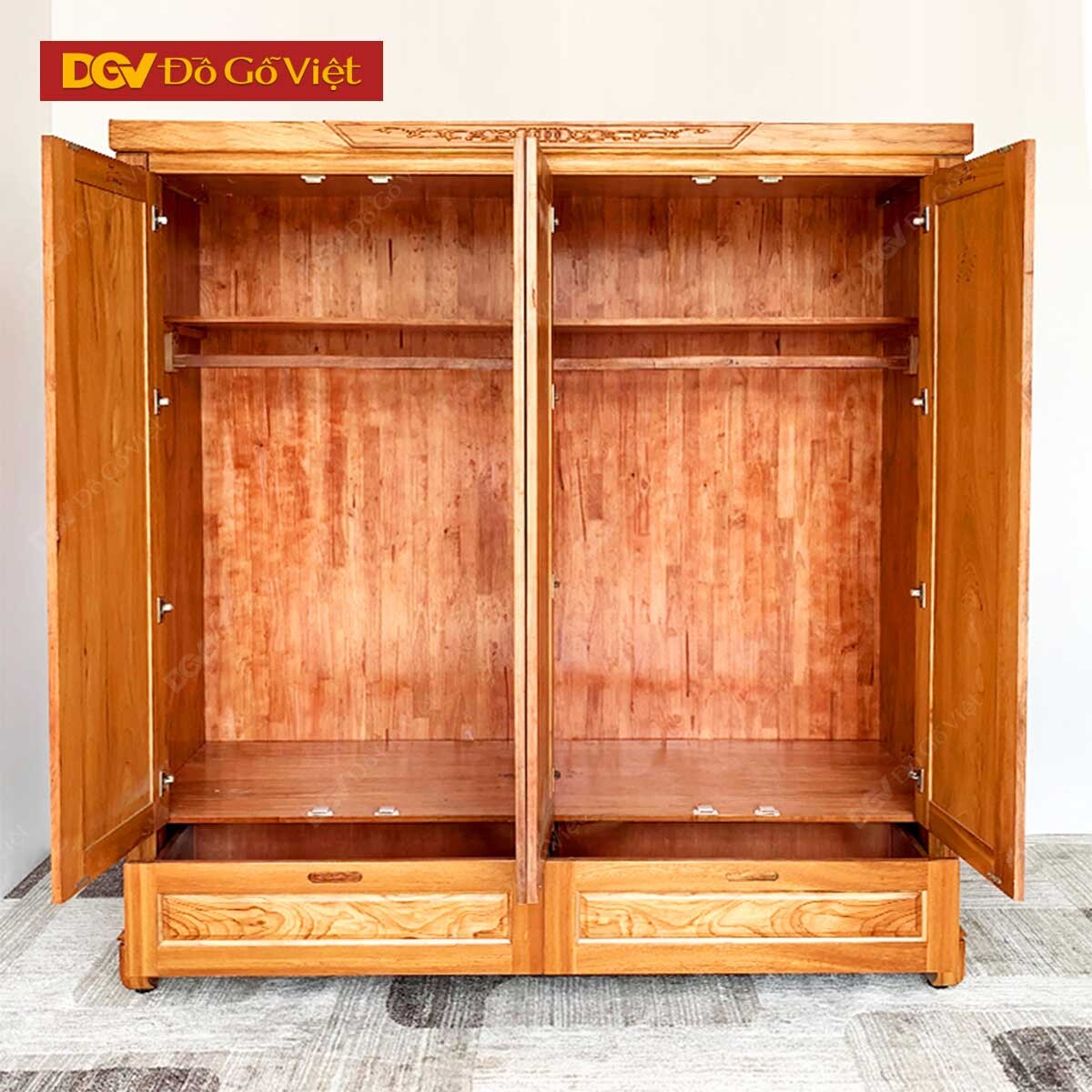 Kích thước chiếc tủ áo gỗ tự nhiên này thích hợp cho nhu cầu sử dụng từ 2 - 4 thành viên, không gian bên trong được tối ưu diện tích mang lại hiệu quả sử dụng cao với 2 buồng lớn bao gồm 2 ngăn để quần áo gấp và 2 ngăn để quần áo treo. Với các hộc kéo âm tiện lợi bạn có nhiều hơn không gian thay đổi tùy đồ dùng cá nhân theo mục đích sử dụng của mình.