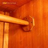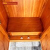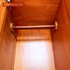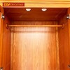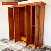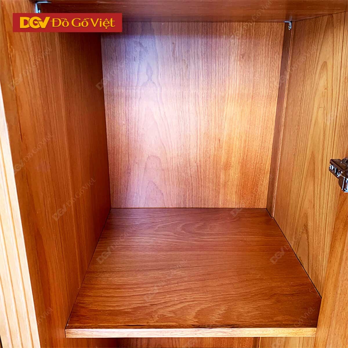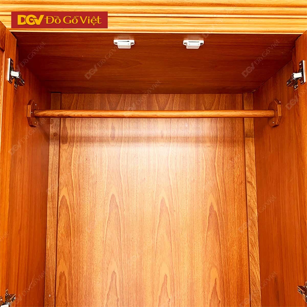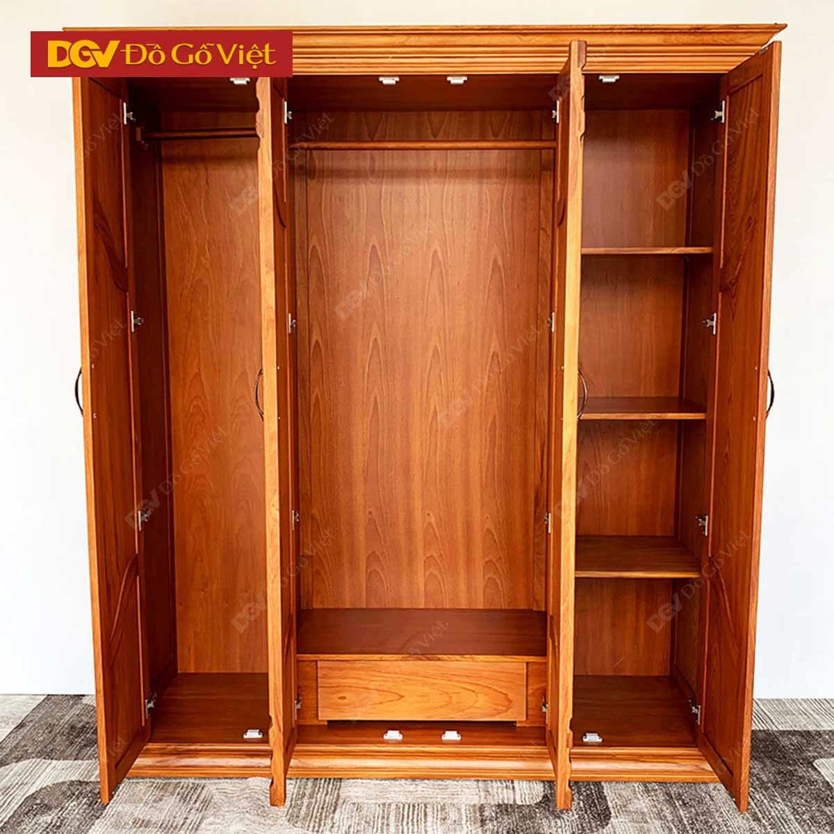 Không gian bên trong tủ quần áo bằng gỗ gõ đỏ gồm 2 ngăn lớn, 4 ngăn nhỏ và 1 hộc tủ âm. Hai ngăn lớn dùng để bảo quản quần áo dài với móc treo quần áo được cố định chắc chắn. Bốn ngăn tủ nhỏ để quần áo gấp gọn. Bên trong ngăn lớn giữa tủ là 1 hộc tủ âm nơi bạn có thể lưu trữ, bảo quản những vật dụng cần thiết.