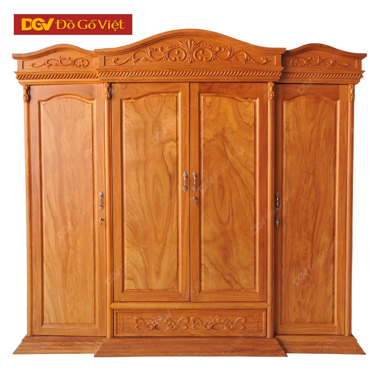 Tủ Quần Áo Bằng Gỗ Vân Gõ 4 Cánh Phù Hợp Cho Gia Đình Nhỏ