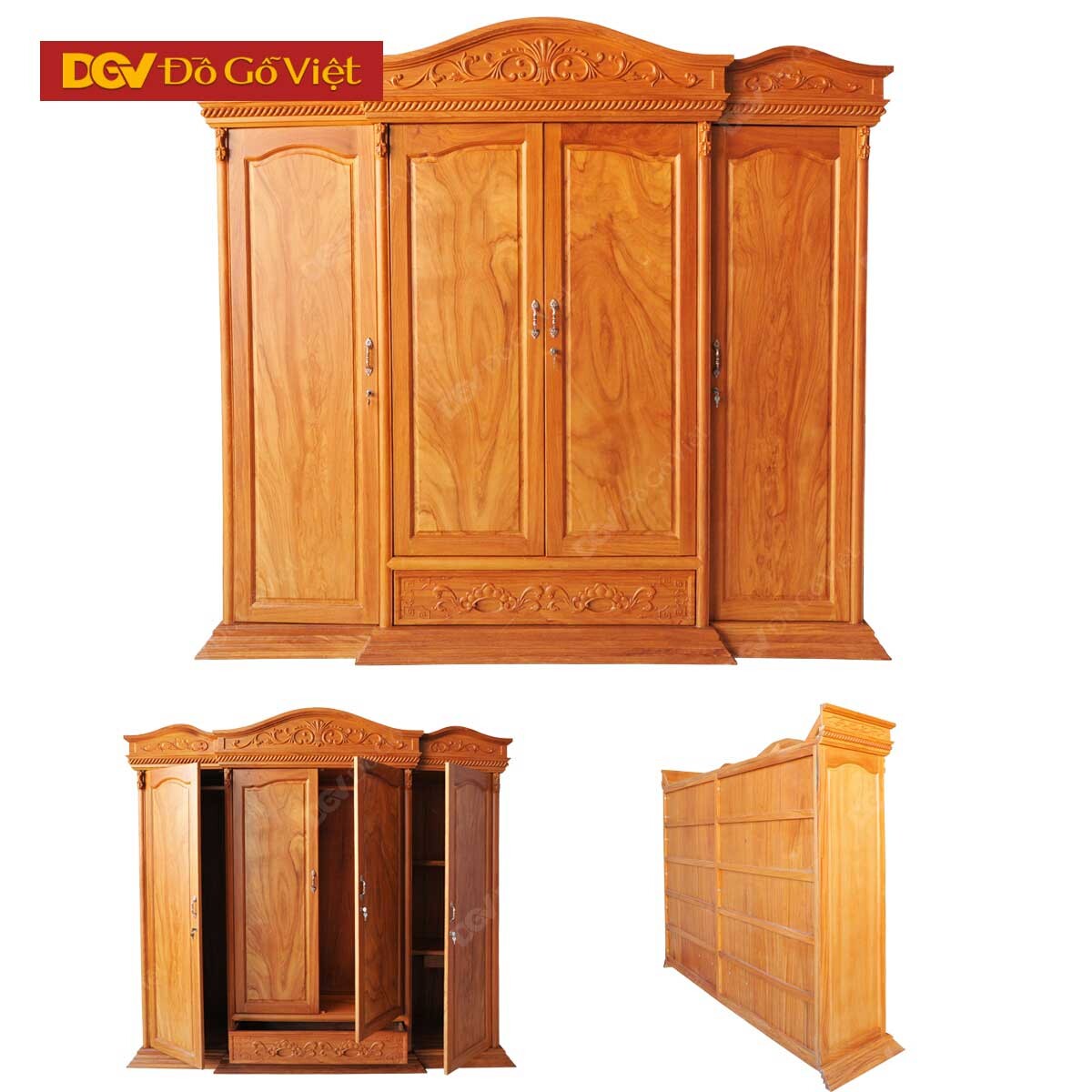 Tủ Quần Áo Gỗ Gõ Đỏ Tự Nhiên 4 Cánh Mở Đẹp Giá Rẻ