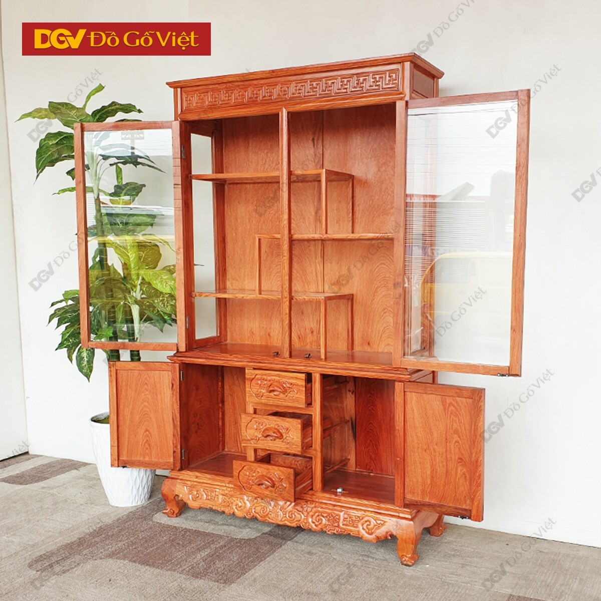 Tủ Rượu Gỗ Tự Nhiên Gỗ Hương Đá Vuông Cho Phòng Khách