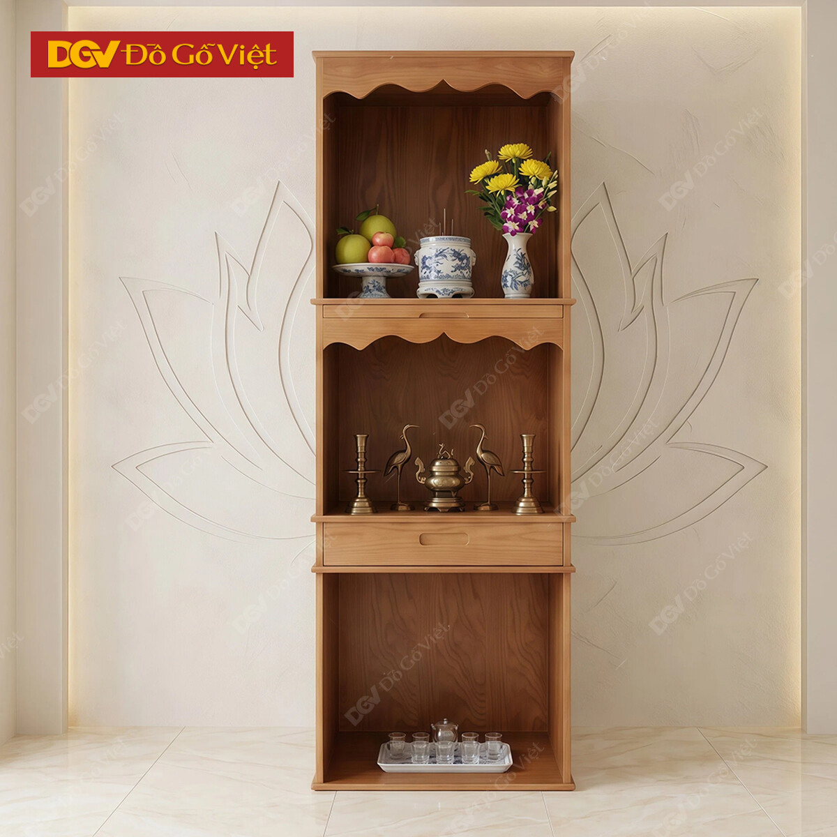 Tủ Thờ Phật Nan Dọc Cánh Mở Cho Phòng Thờ Gia Tiên