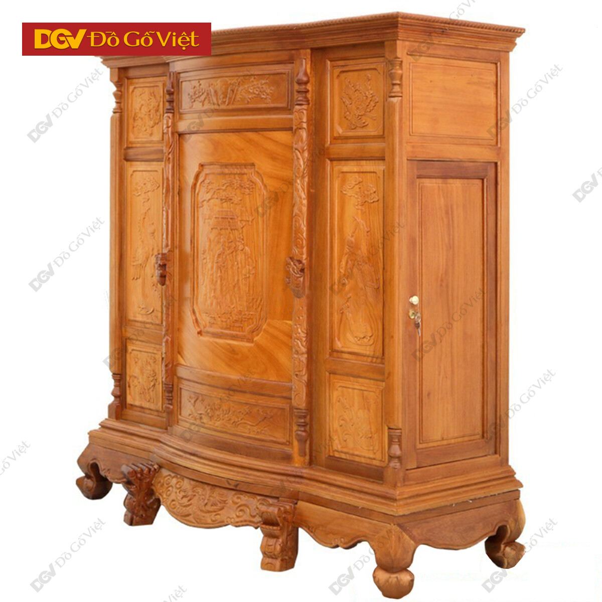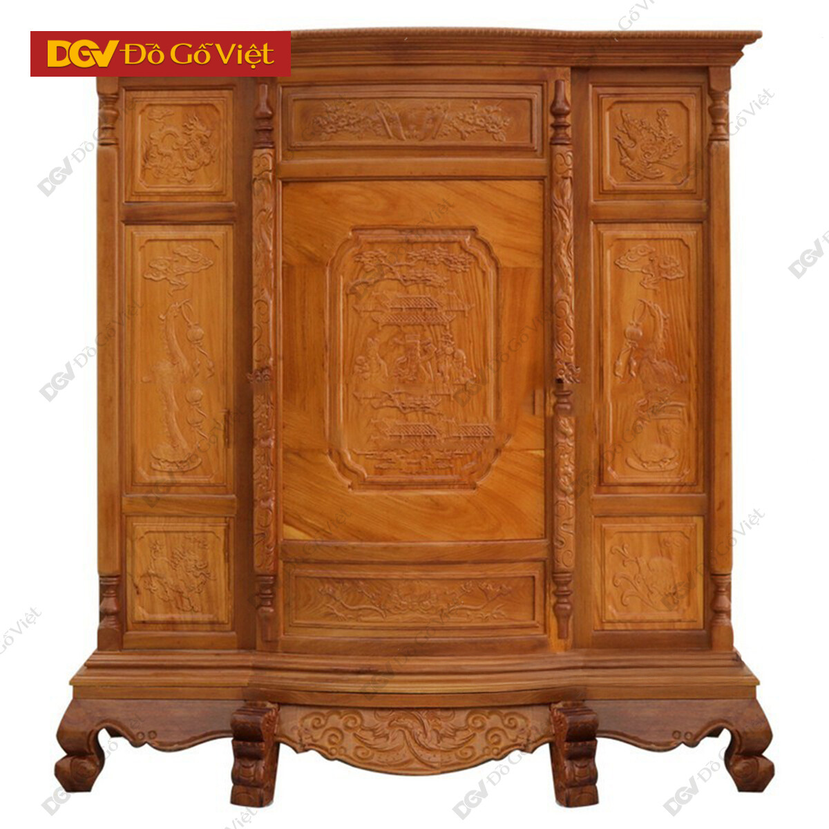Tủ Thờ Căm Xe Mặt Gõ Bụng Phệ 6 Chân Chạm Tam Đa 1m47 Đẹp