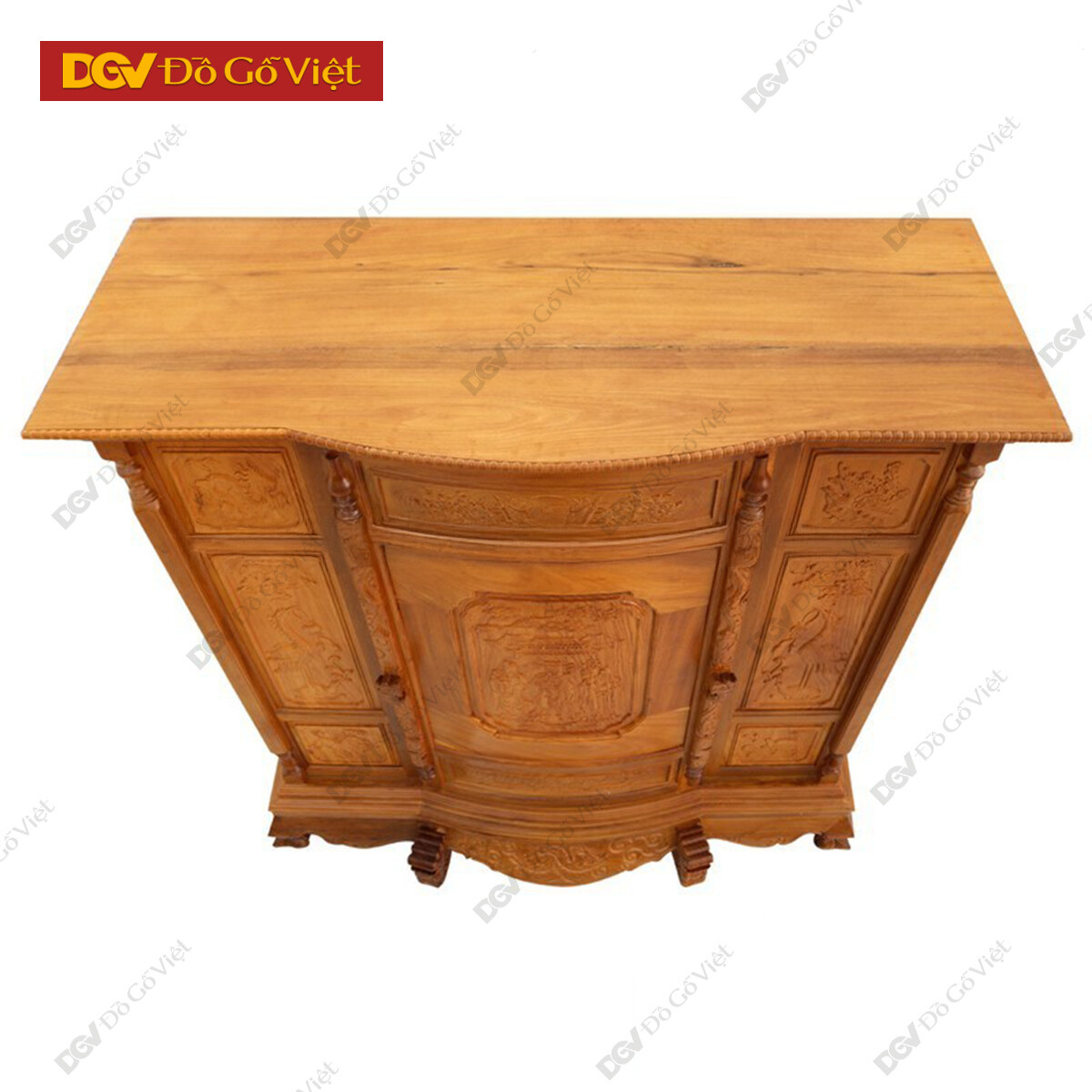 Tủ Thờ Căm Xe Mặt Gõ Bụng Phệ 6 Chân Chạm Tam Đa 1m47