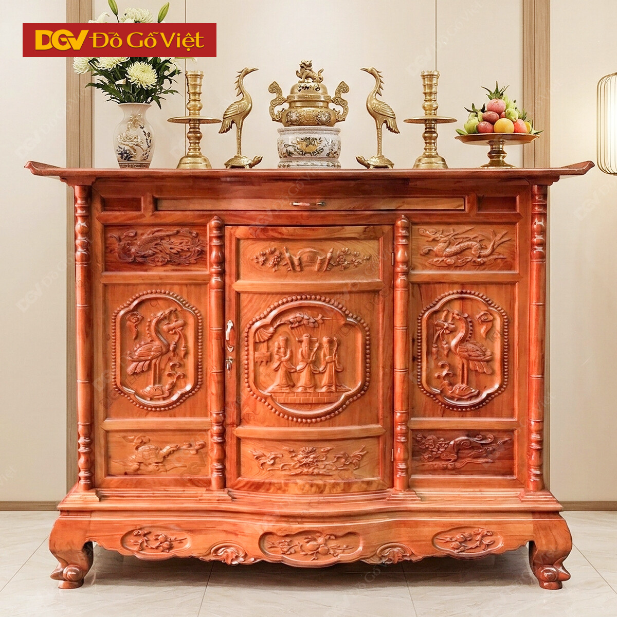 Tủ Thờ Cao Cấp Gỗ Hương Đá Chạm Phúc Lộc Thọ 1m53 Đẹp Giá Rẻ