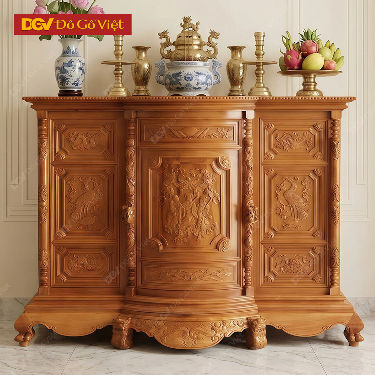 Tủ Thờ Gõ Đỏ Vuông Chạm Hoa Văn Đẹp Sang Trọng