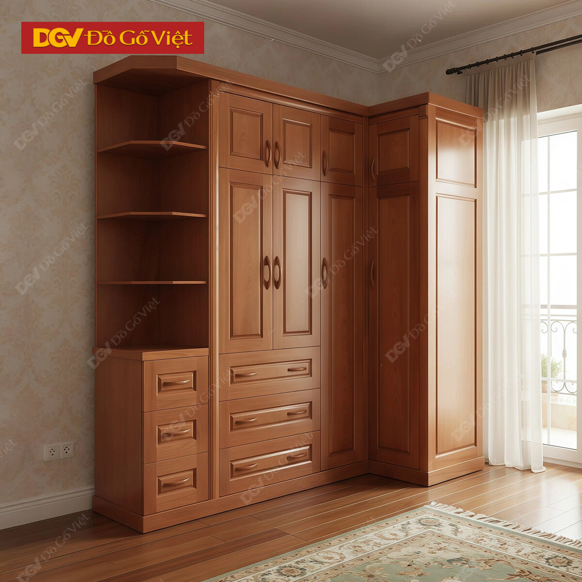 Tủ Treo Quần Áo Gỗ Xoan Thiết Kế Góc L Tối Ưu Diện Tích
