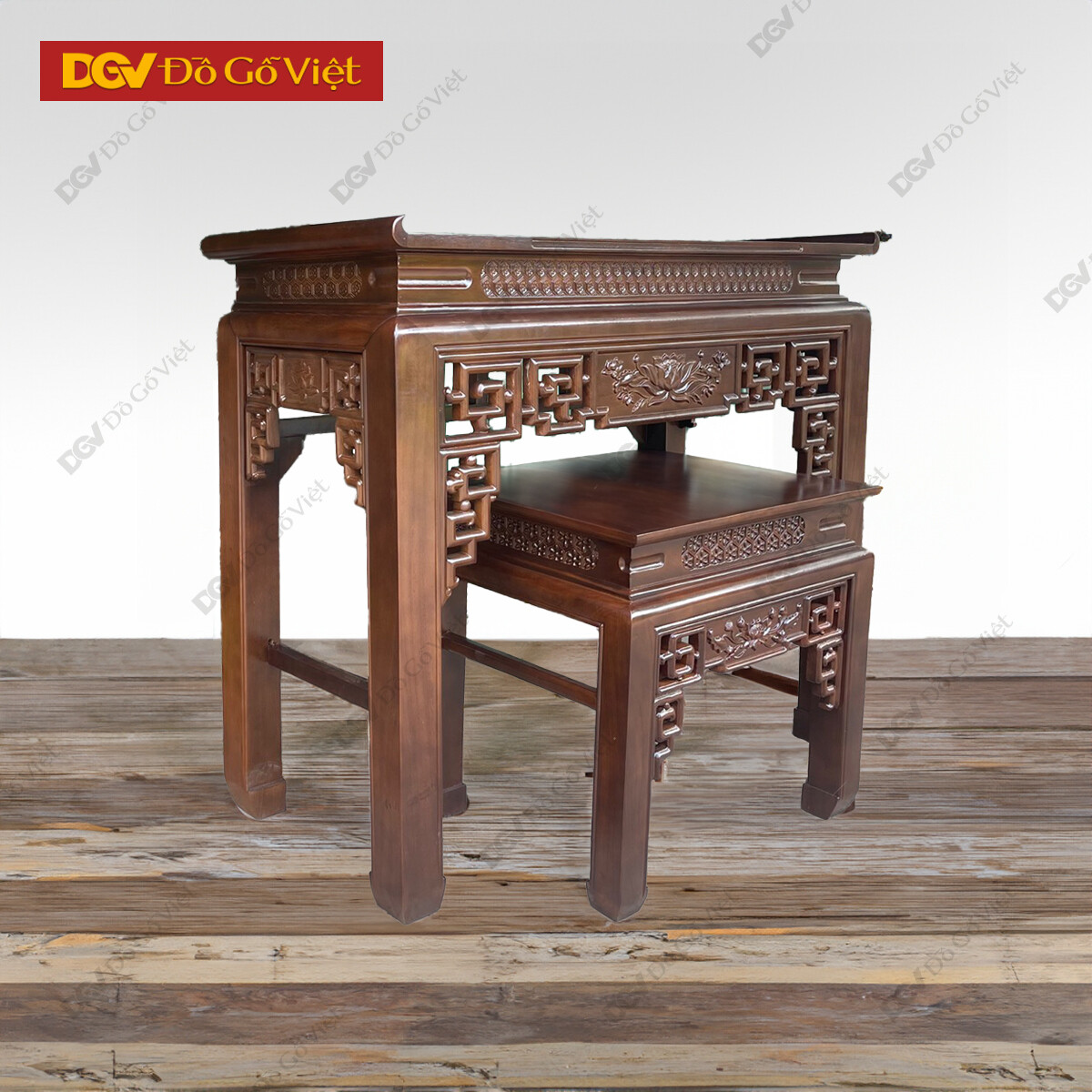 Bàn Thờ Án Gian Chạm Sen Gỗ Gõ Đỏ 1m07 Kèm Tủ Táp