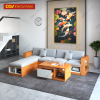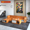 Bộ Bàn Ghế Sofa Kiểu Góc L Vân Gõ Phong Cách Trẻ Trung