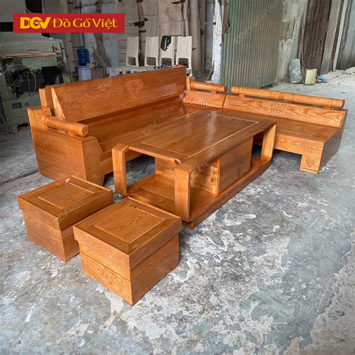 Bộ Bàn Ghế Sofa Góc Hiện Đại Gỗ Sồi Nga Tay Trứng Đẹp Rẻ