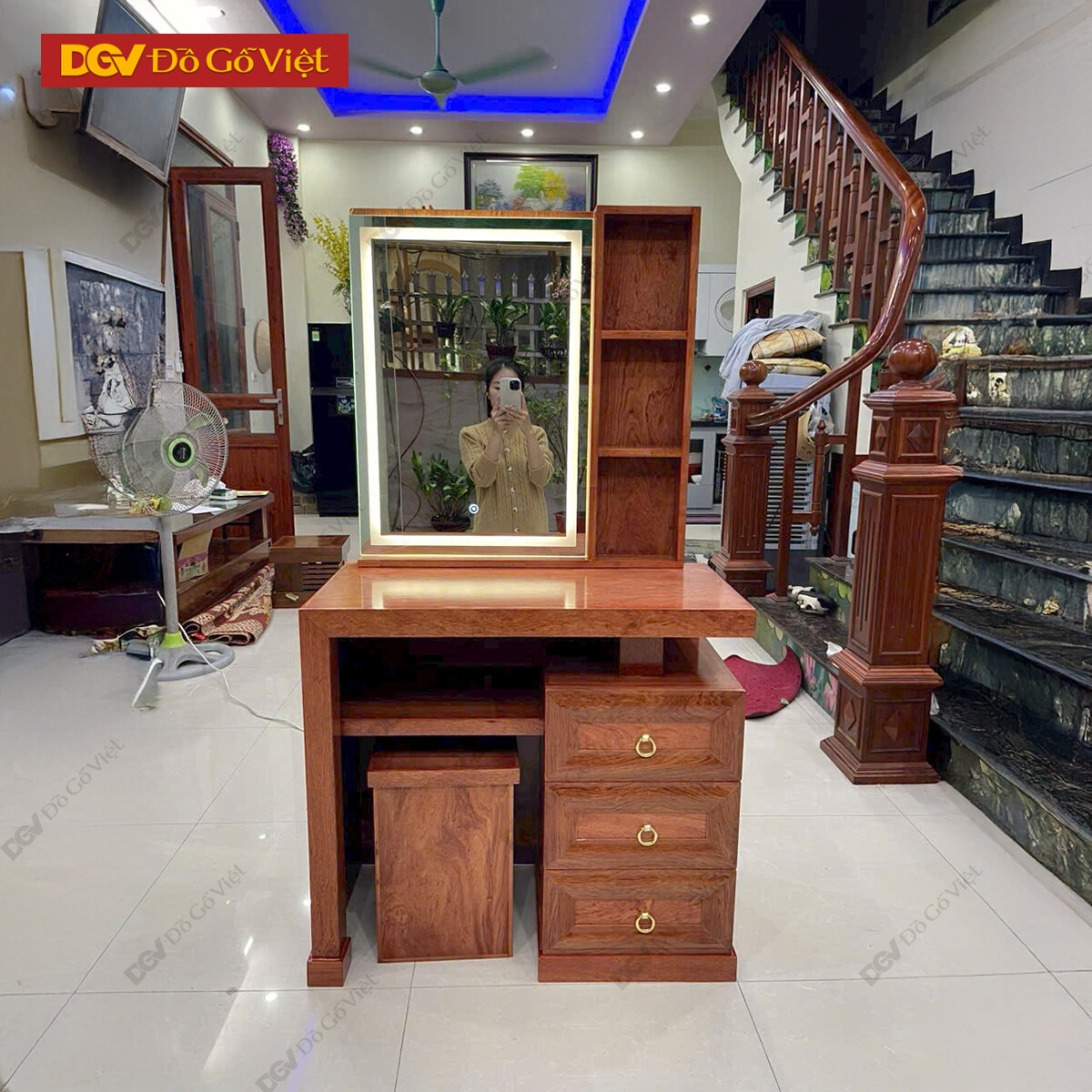 Bàn Trang Điểm Gỗ Hương Đá 2 Thùng Kính Cong Đẹp Giá Rẻ