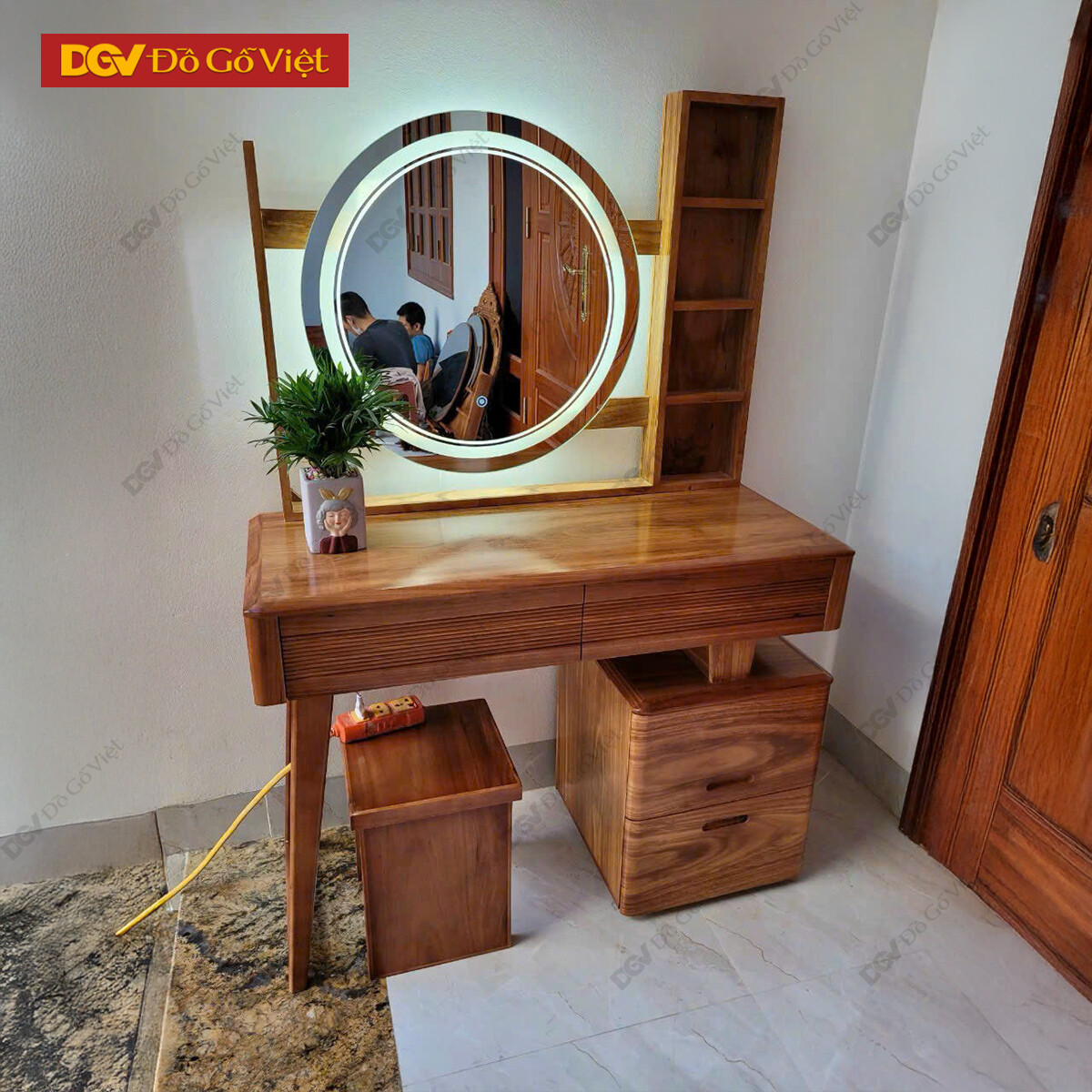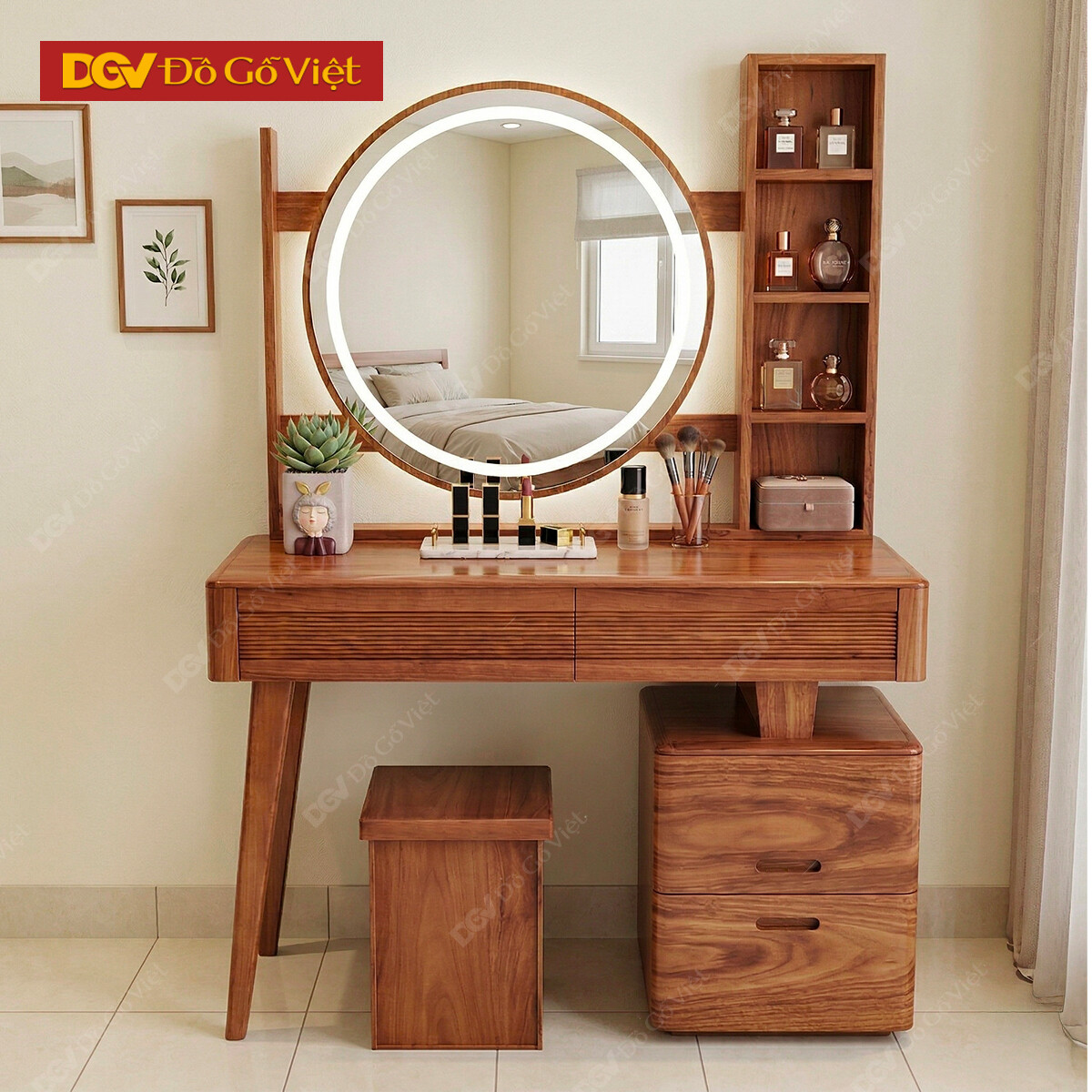 Bàn Phấn Gương Led Tròn Kèm Kệ Nhỏ Gỗ Hương Xám Chất Lượng