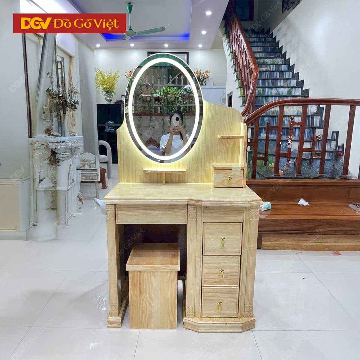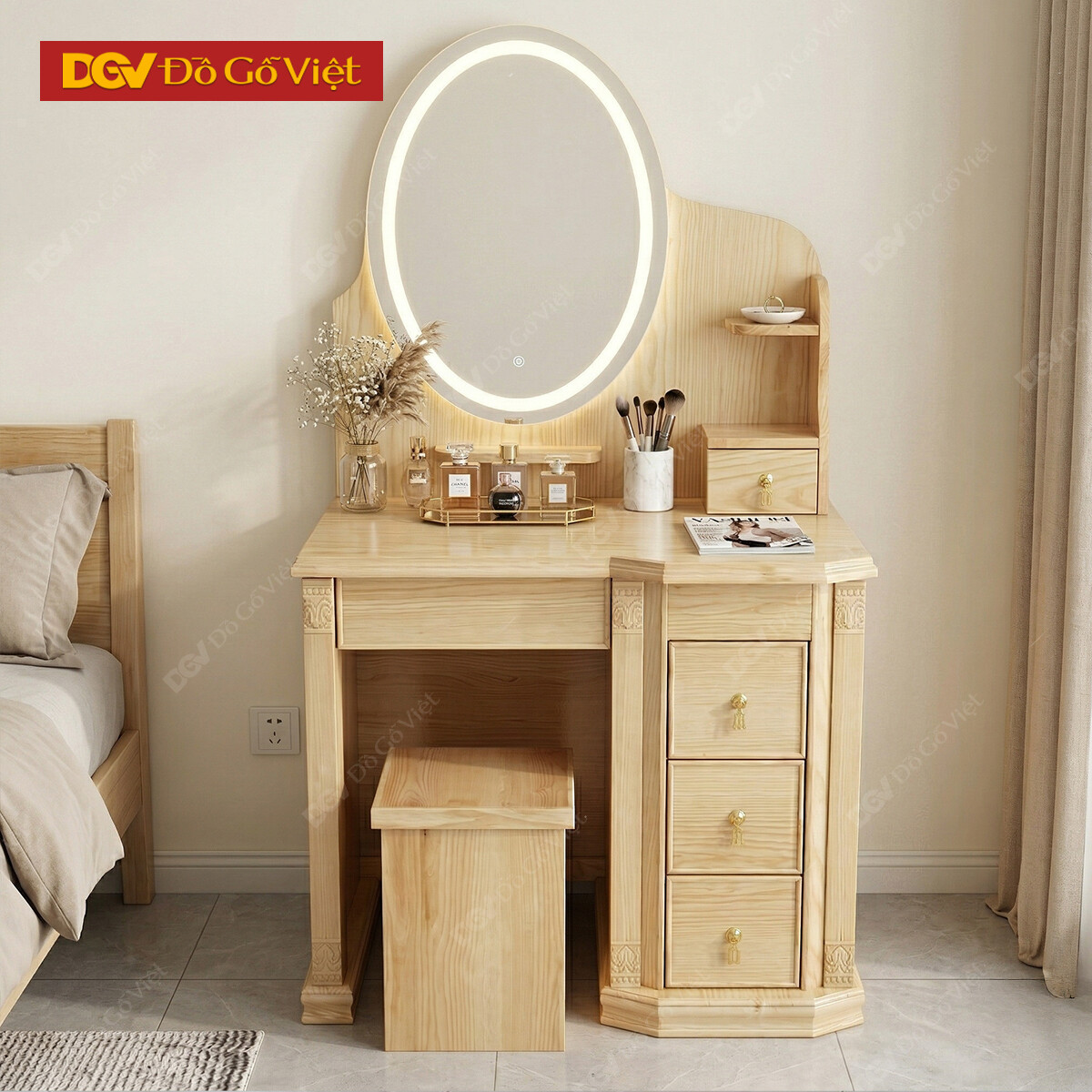 Bàn Phấn Gương Oval Viền Led Gỗ Sồi Nga Đẹp Mẫu Mới 2026