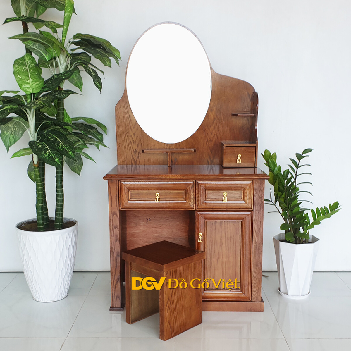 Bàn Phấn Oval Gỗ Sồi Nga Màu Nâu Óc Chó 80cm Đẹp Giá Rẻ