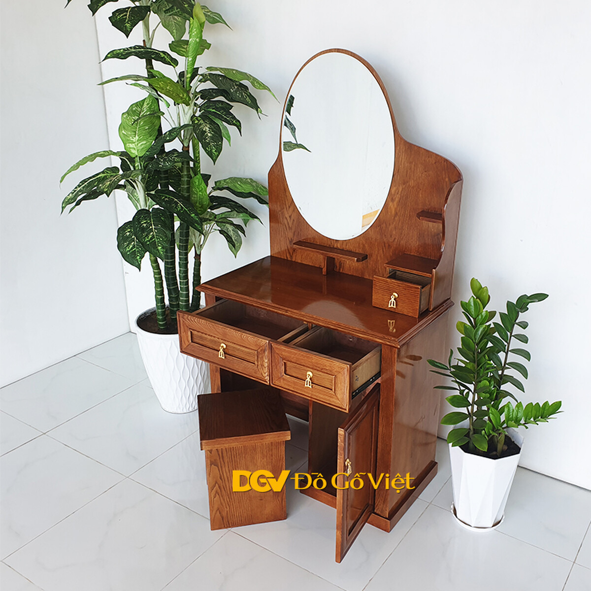Bàn Trang Điểm Gỗ Sồi Nga Kính Vuông Đẹp Giá Rẻ