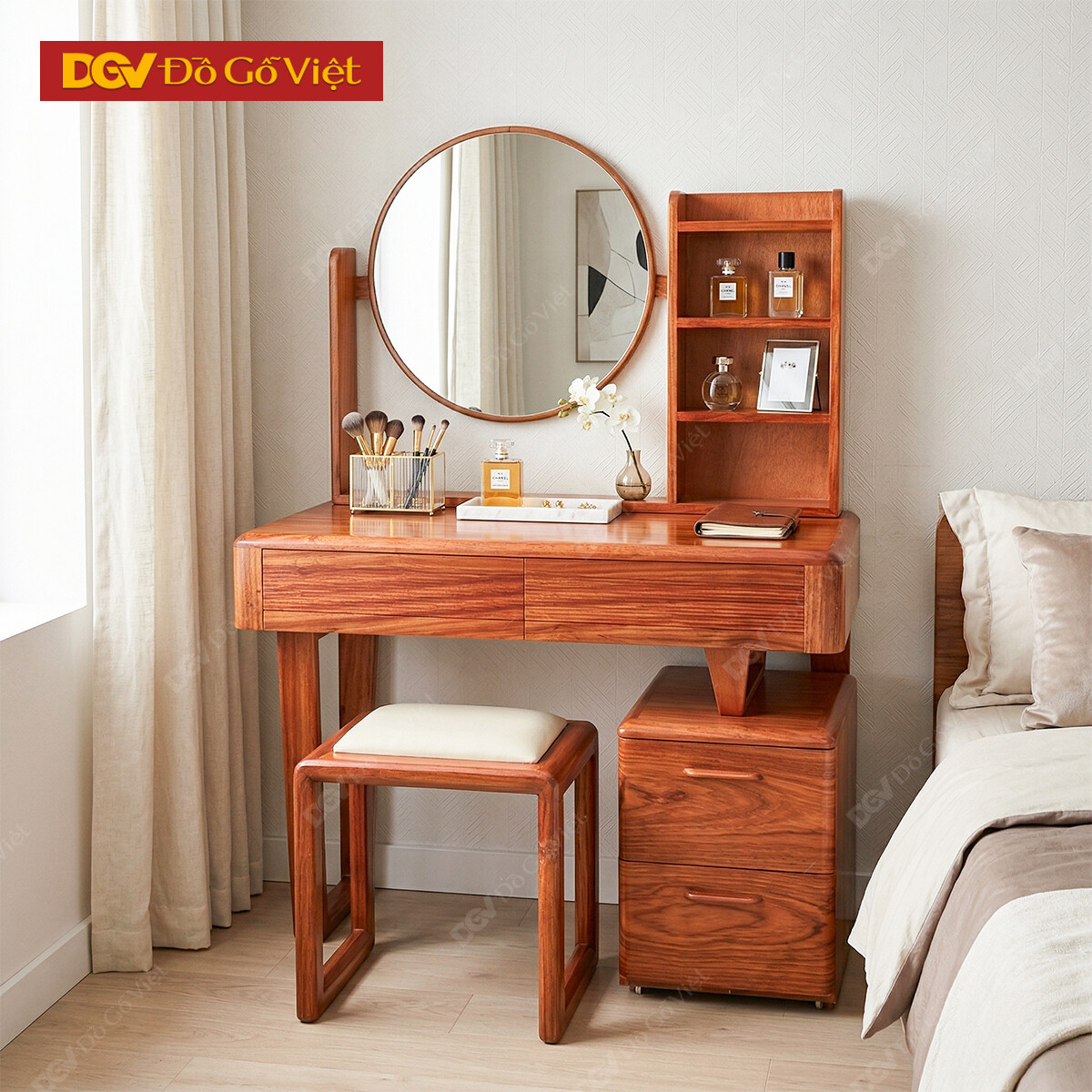 Bàn Trang Điểm Gỗ Cẩm Phong Cách Trẻ Trung Hiện Đại