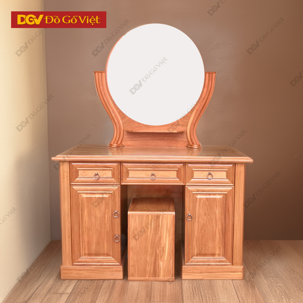 Bàn Phấn Trang Điểm Gỗ Đinh Hương 1m1 Gương Tròn Giá Rẻ