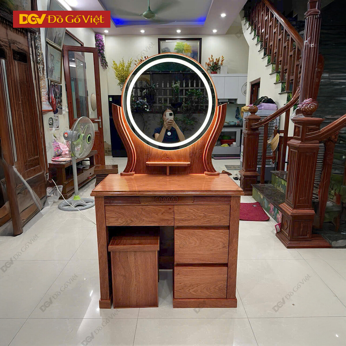 Bàn Trang Điểm Gỗ Hương Đá 2 Thùng Kính Cong Đẹp Giá Rẻ