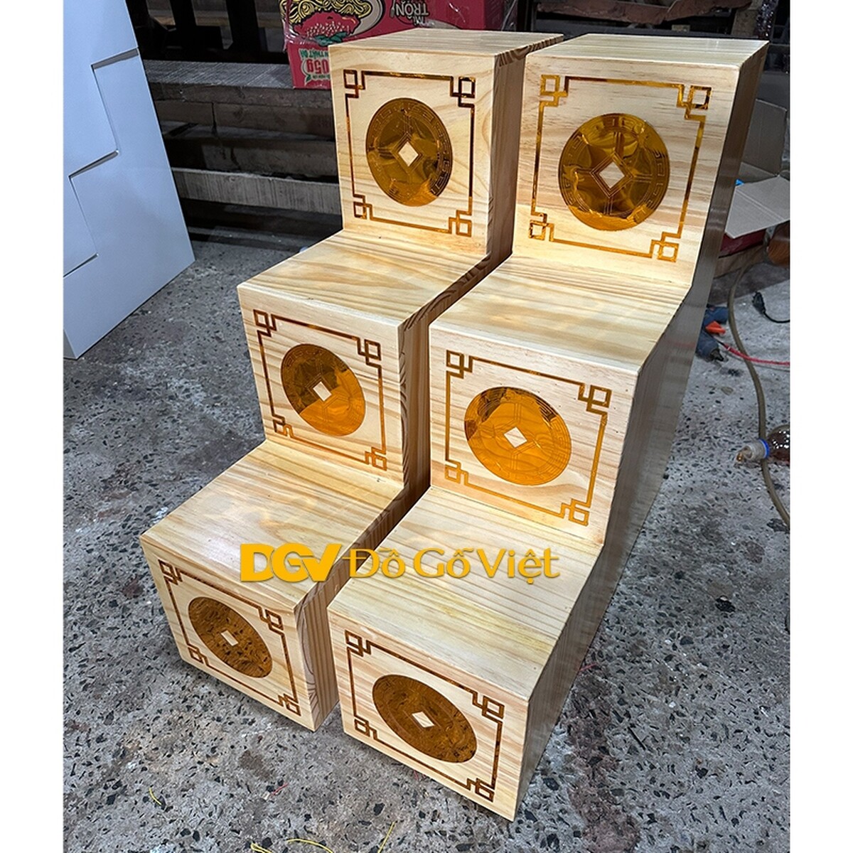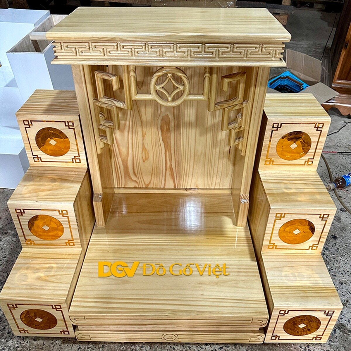 Bàn Thần Tài Gỗ Thông Có Kệ Tam Cấp Màu Tự Nhiên