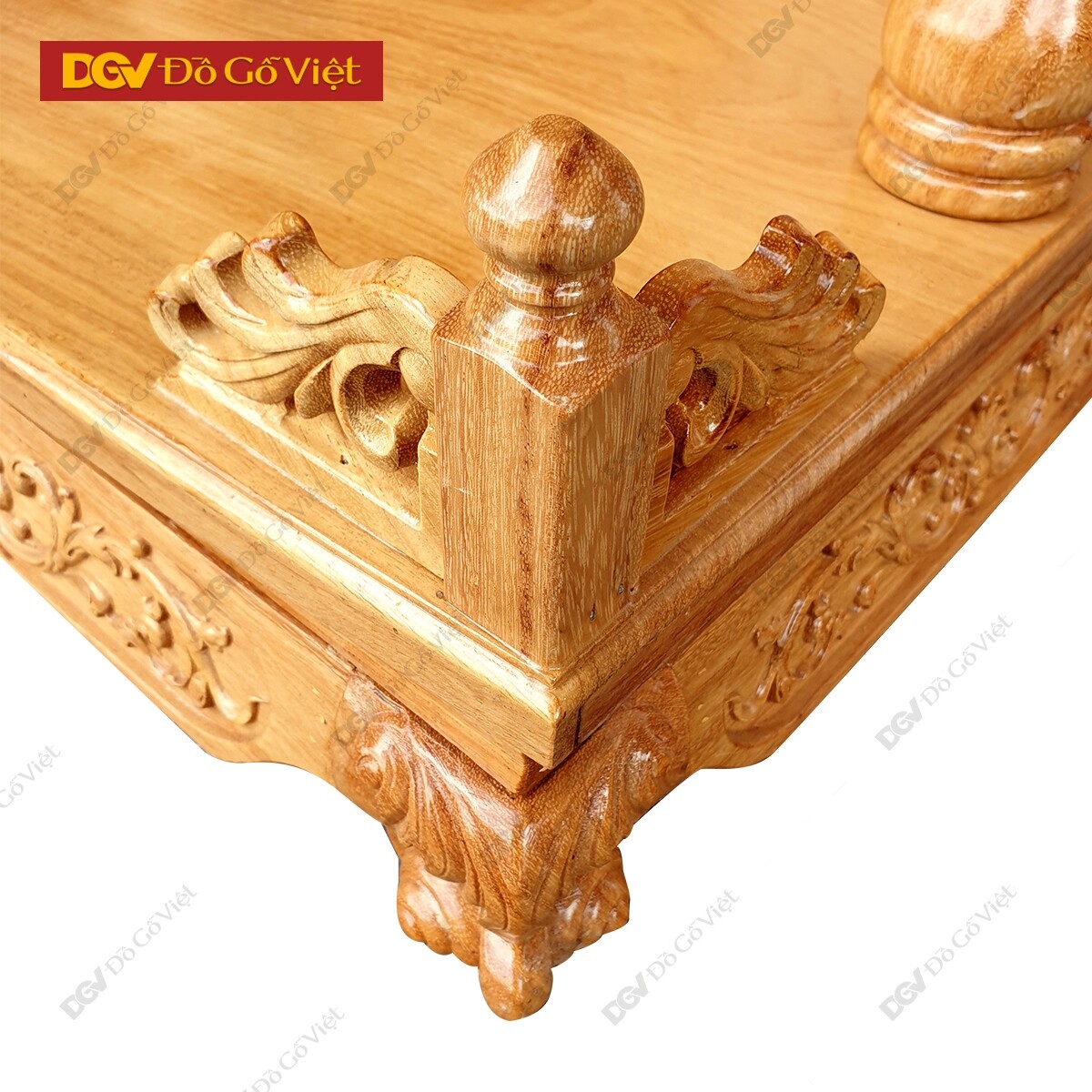 Các chi tiết phụ như 2 Chân bàn, 2 mặt bên, khay thờ phụ được chạm họa tiết hoa nở cách điều với sự cân bằng và đối xứng với nhau. Đảm bảo sự hài hòa và tính thẩm mỹ tốt cho tổng thể sản phẩm, dù nhìn ở góc cạnh nào vẫn đáp ứng được yêu cầu cao của khách hàng.