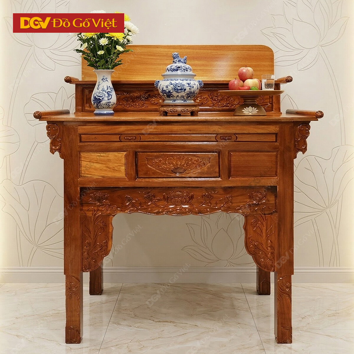 Bàn Cúng Gia Tiên 1 Tầng Gỗ Căm Xe Mặt Gõ Đỏ
