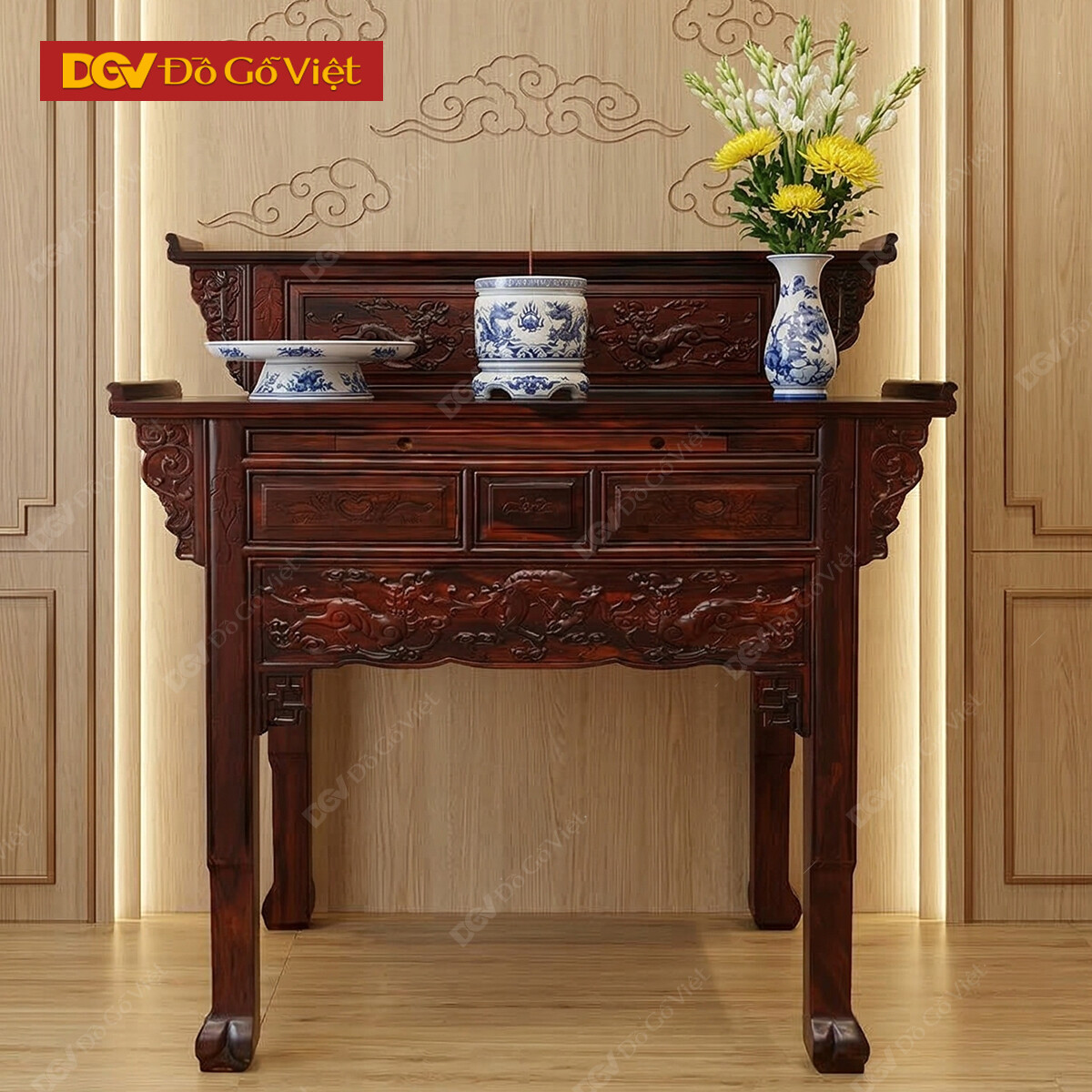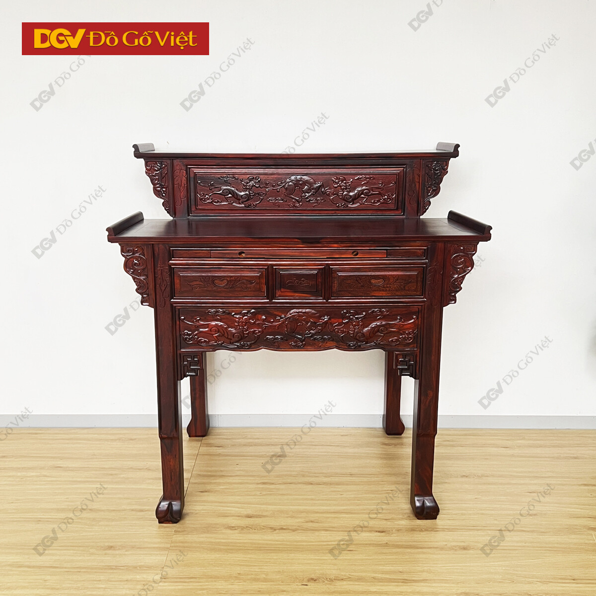 Bàn Thờ Gia Tiên Gỗ Muồng 2 Tầng Chạm Rồng Tinh Xảo