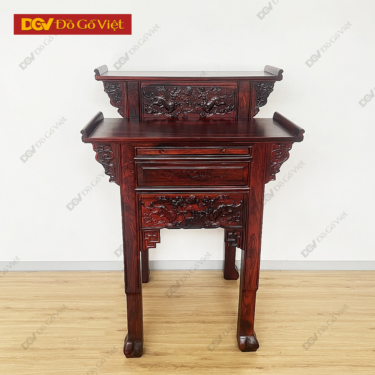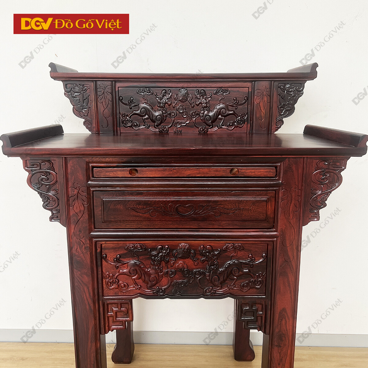 Bàn Thờ Gia Tiên 2 Tầng Gỗ Muồng Chạm Nghê Đẹp Mắt Giá Tốt