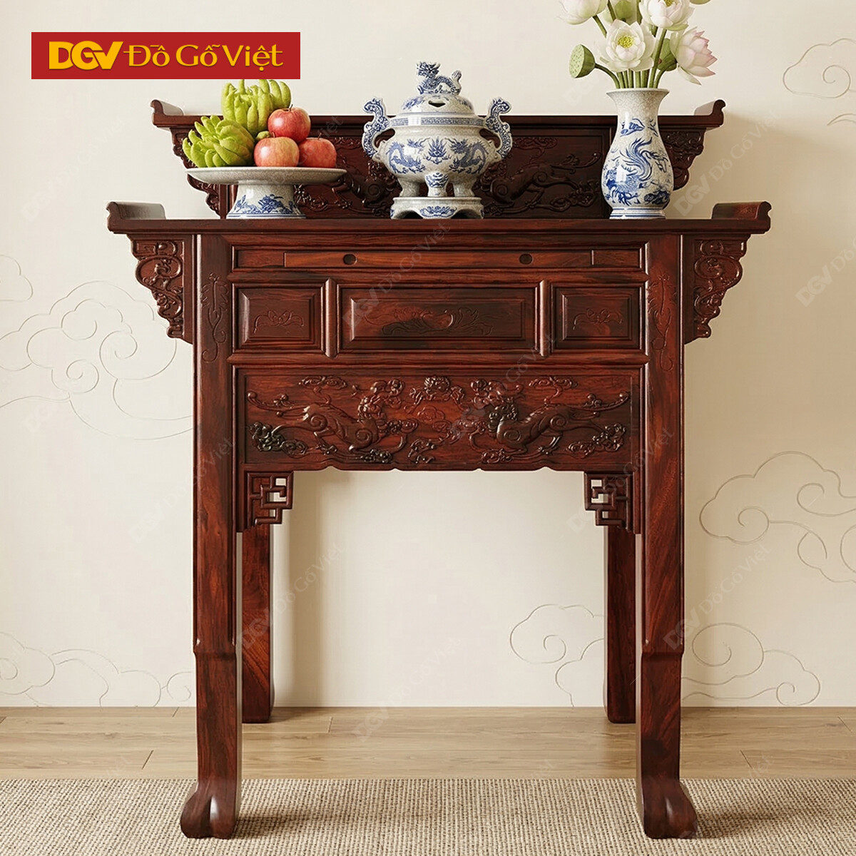 Bàn Thờ Gia Tiên Gỗ Muồng 2 Tầng Chạm Rồng Tinh Xảo