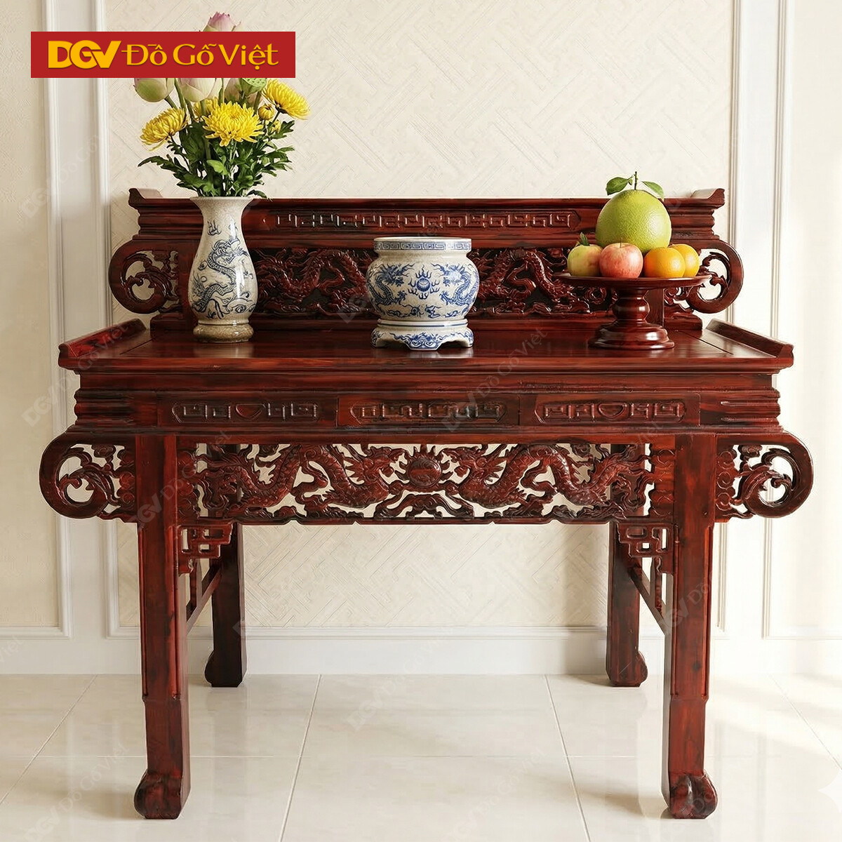 Chất liệu gỗ tốt cùng lớp sơn chất lượng nên bạn có thể lau chùi, vệ sinh bàn thờ để sản phẩm luôn sạch sẽ, giữ được sự tôn nghiêm của không gian phòng thờ.