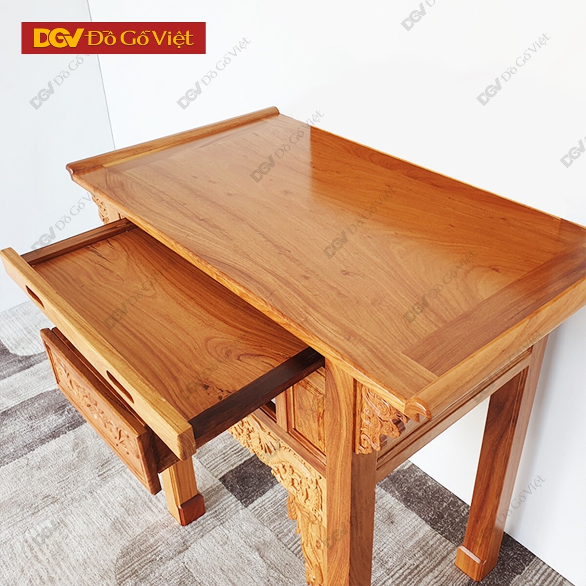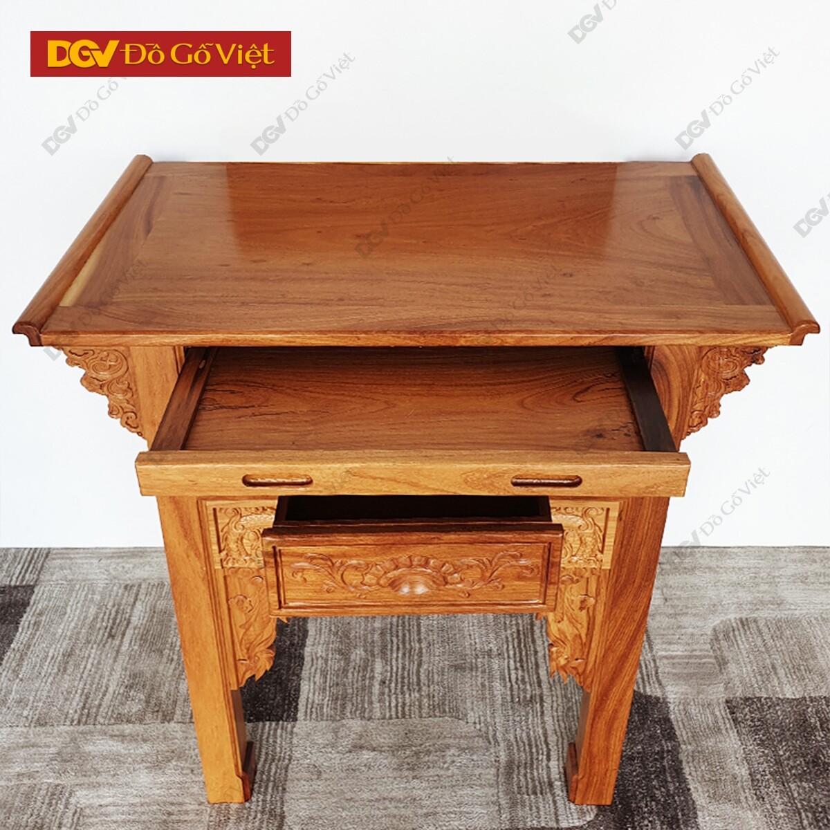 Nhằm tăng tính sử dụng hữu ích nhất cho sản phẩm, bàn thờ được thiết kế thêm 1 hộc kéo và khay thờ tiện lợi để tăng thêm không gian sử dụng. Phù hợp với nhiều mục đích sử dụng khác nhau nhưng vẫn đảm bảo tính nhỏ gọn và hiệu quả tối đa nhất.