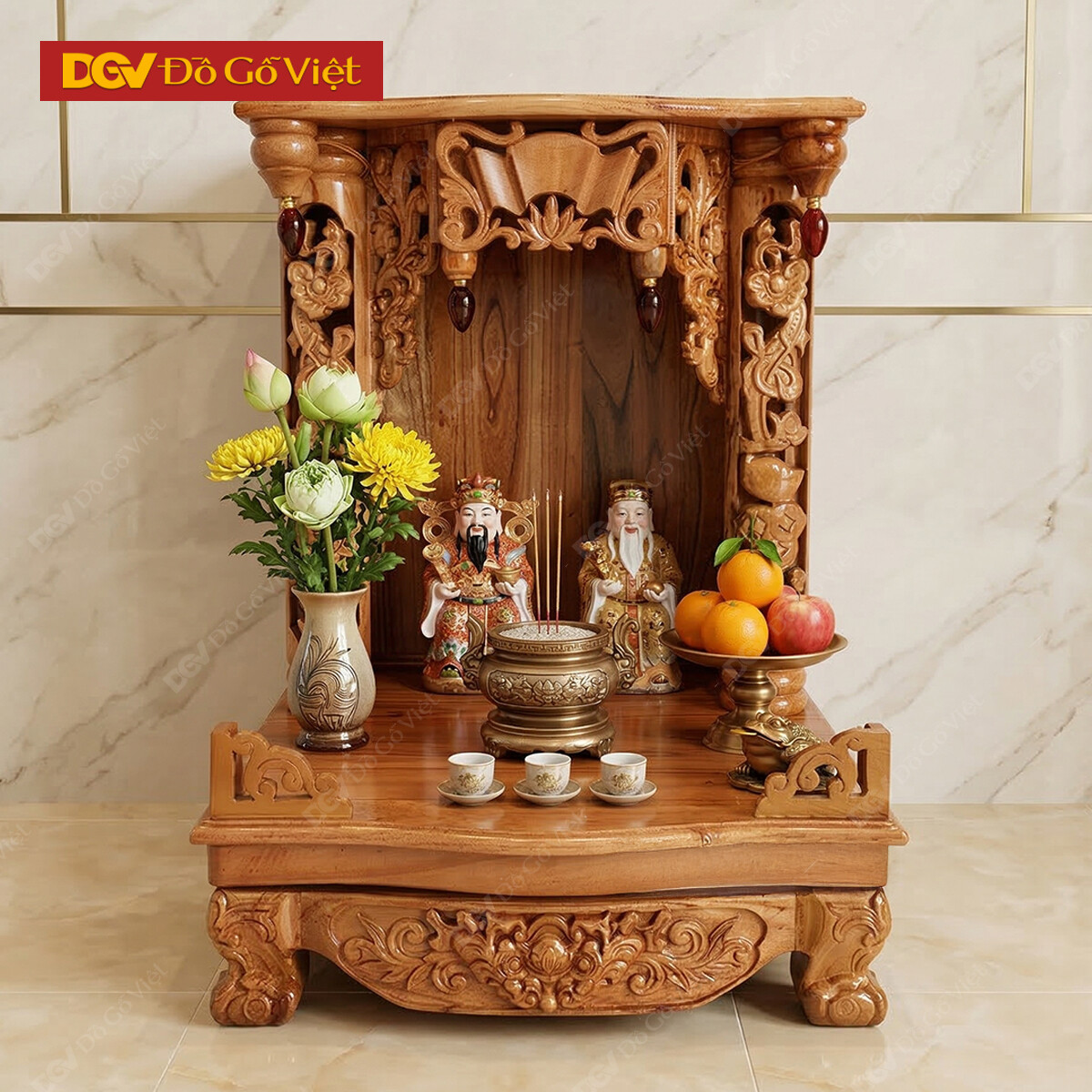 Với kích thước khá nhỏ là 48 x 68 x 50cm, thích hợp cho các gia đình hiện đại sử dụng trong các không gian sống nhỏ hẹp như nhà phố, cửa tiệm, cửa hàng nhỏ. Đây là cách tiết kiệm diện tích tối ưu mà vẫn đảm bảo được các yêu cầu cần thiết cho việc thờ phụng thổ địa, thần tài.