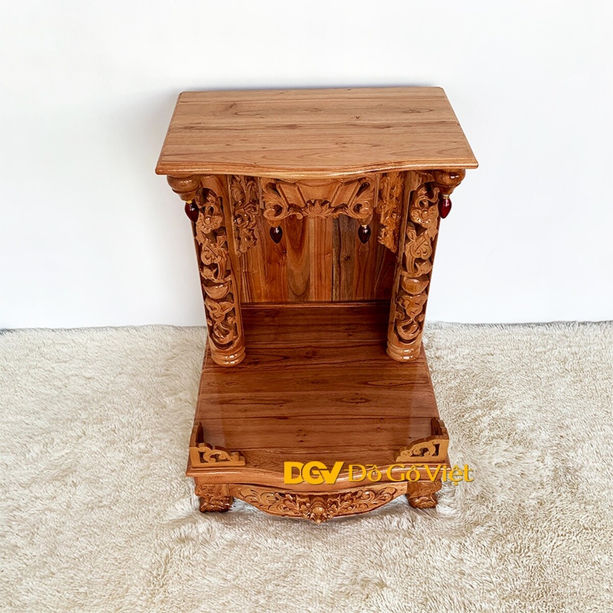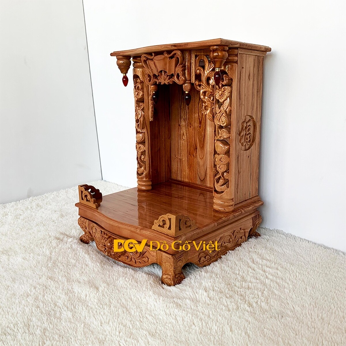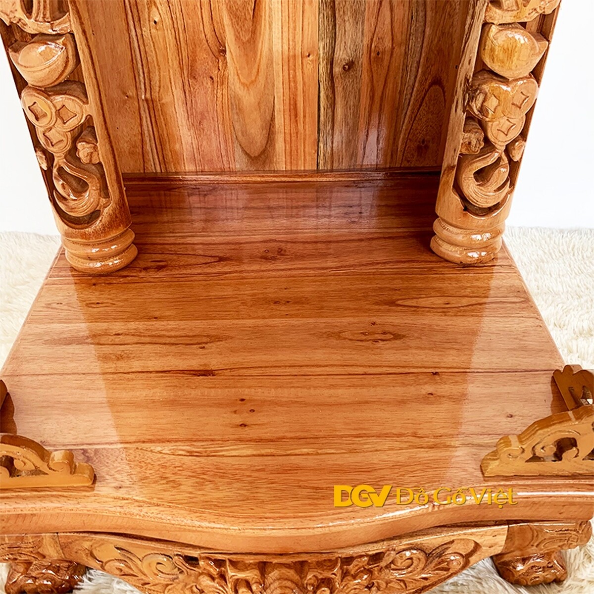 Từ mái bằng đến vách bàn thờ và cả mặt bàn thờ đều được làm từ gỗ tự nhiên nguyên tấm dày đảm bảo khả năng chịu lực, sự rắn chắc và độ bền sử dụng tốt nhất.