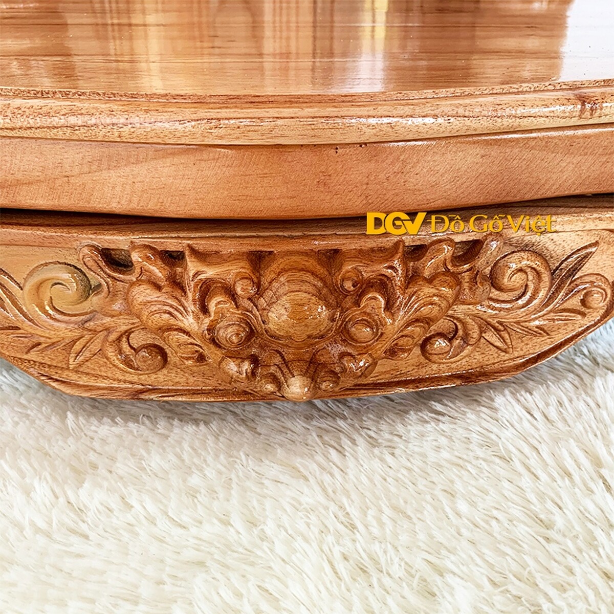 Bàn thần tài gỗ xoan đào được thiết kế theo phong cách cổ điển đặc trưng cho văn hóa dân gian truyền thống của người Á Đông. Những họa tiết chủ đạo được chạm trổ vừa mang theo nét đẹp nghệ thuật vừa có ý nghĩa phong thủy tốt lành cho gia chủ.