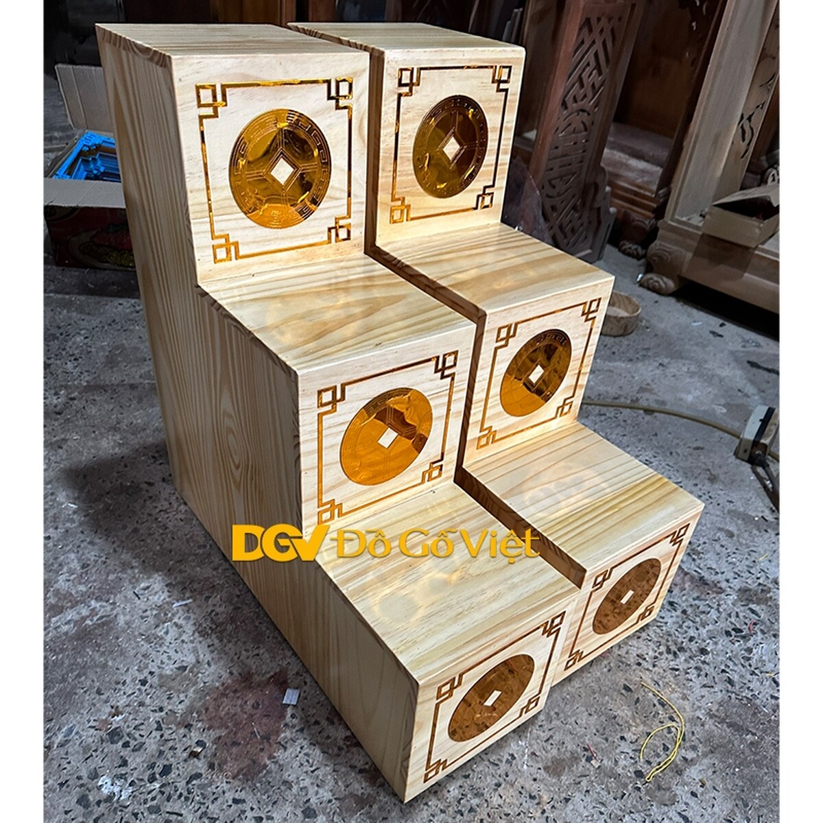 Bàn Thần Tài Gỗ Thông Có Kệ Tam Cấp Màu Tự Nhiên
