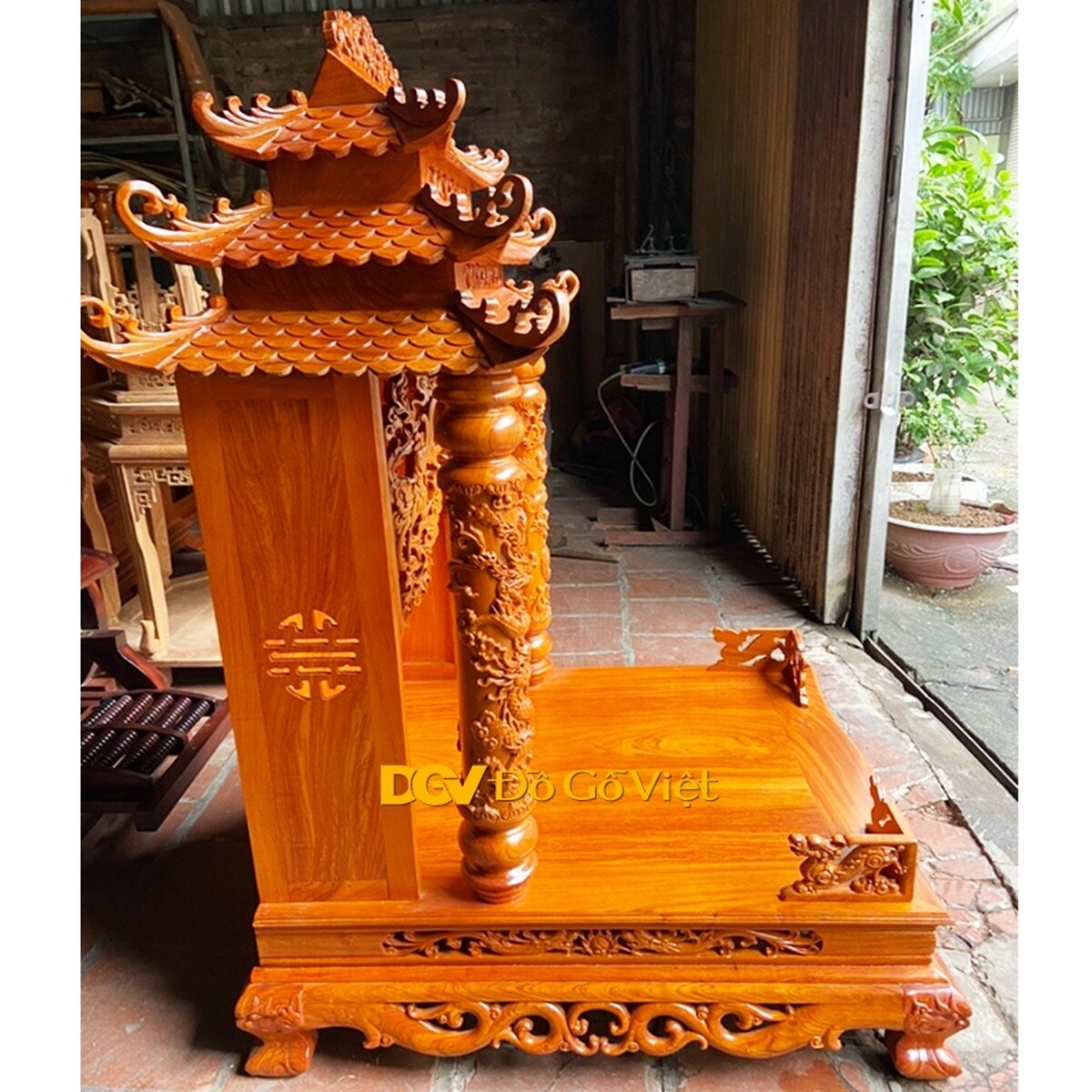 Bàn Thờ Thần Tài Chạm Rồng Gỗ Hương Đá Tự Nhiên Đẹp