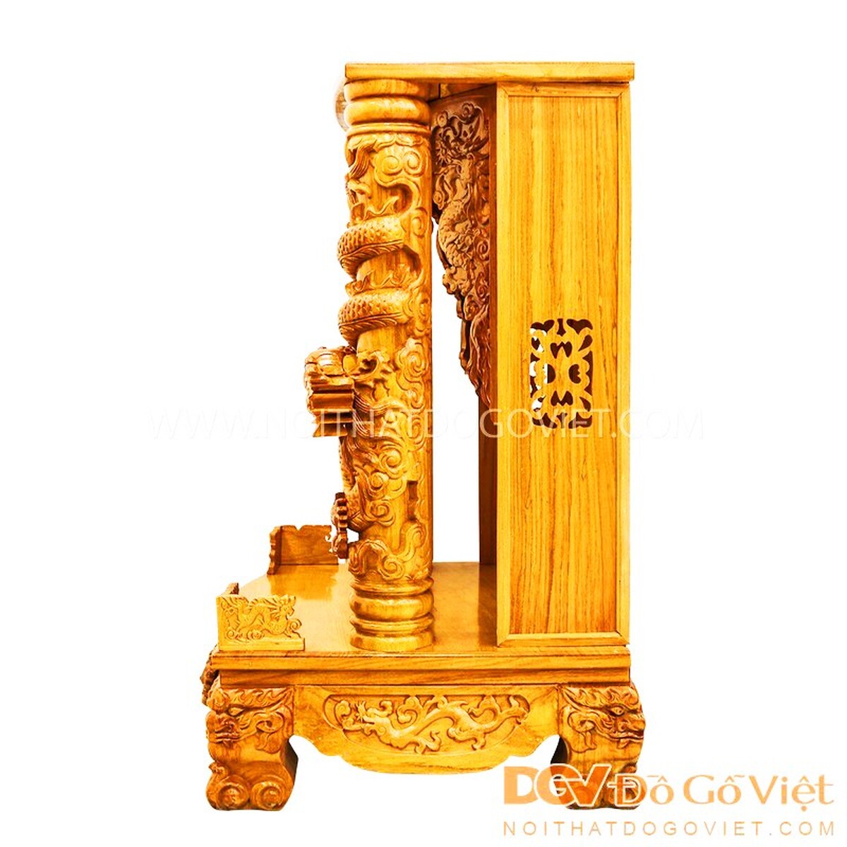 Vách bên, vách lưng sau và mặt bàn thờ được chế tác nguyên khối đảm bảo sự đồng đều trong thiết kế, nâng cao độ bền, độ chịu lực và kết cấu ổn định trong suốt thời gian dài, đảm bảo giá trị sử dụng lâu dài và hữu ích nhất.