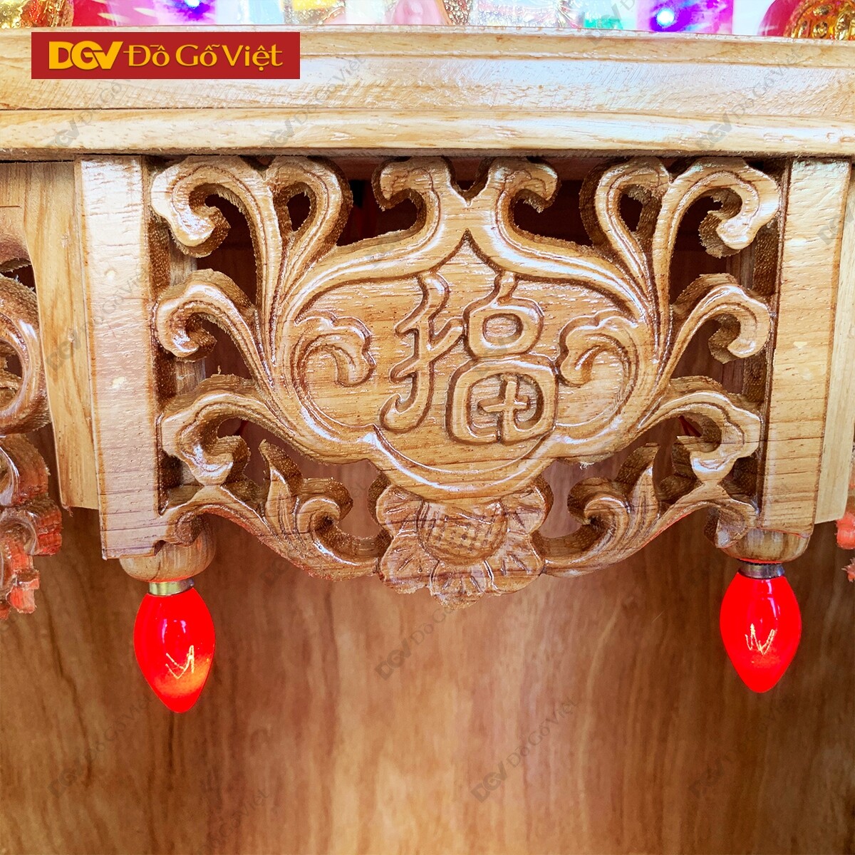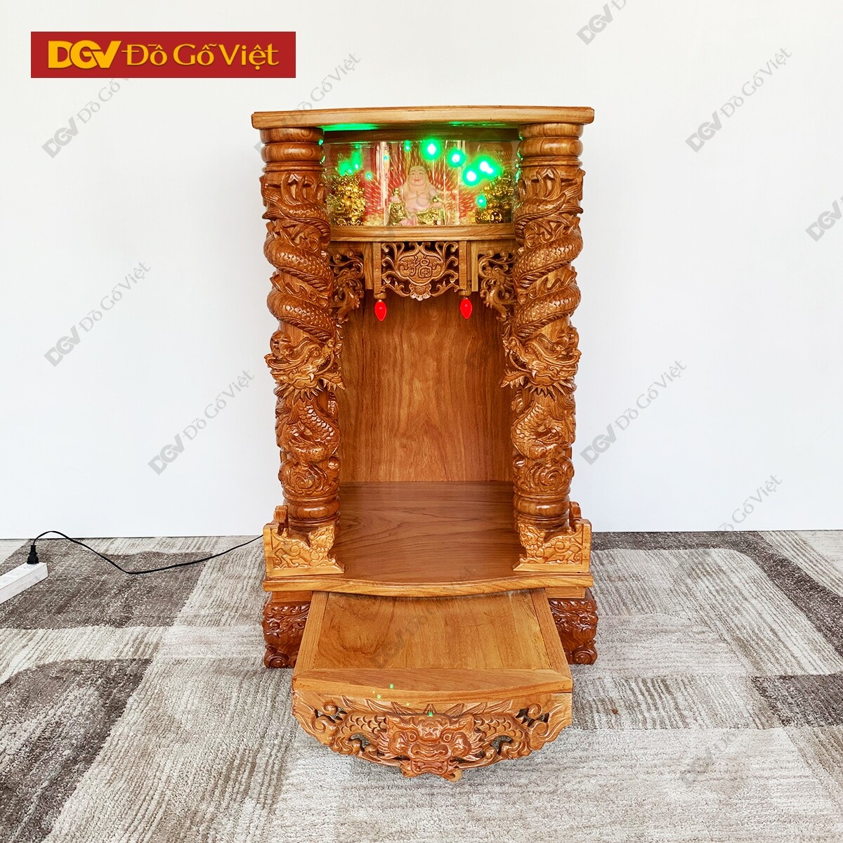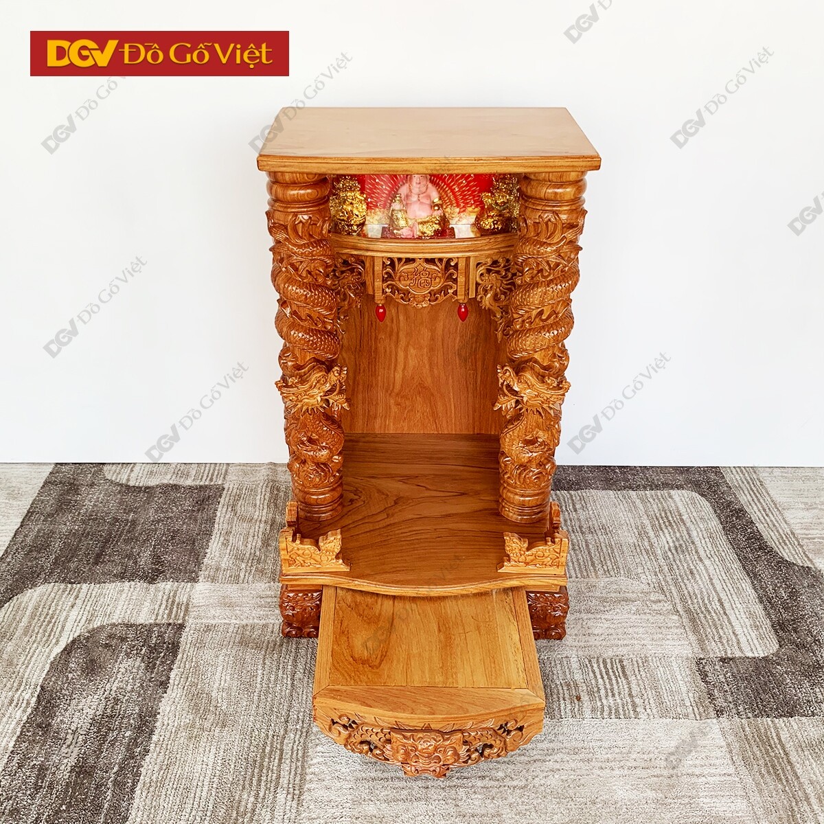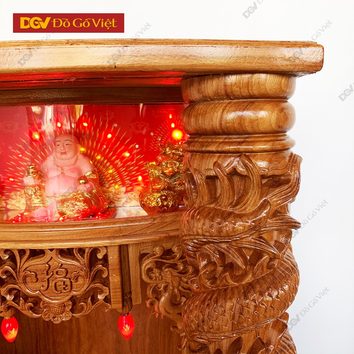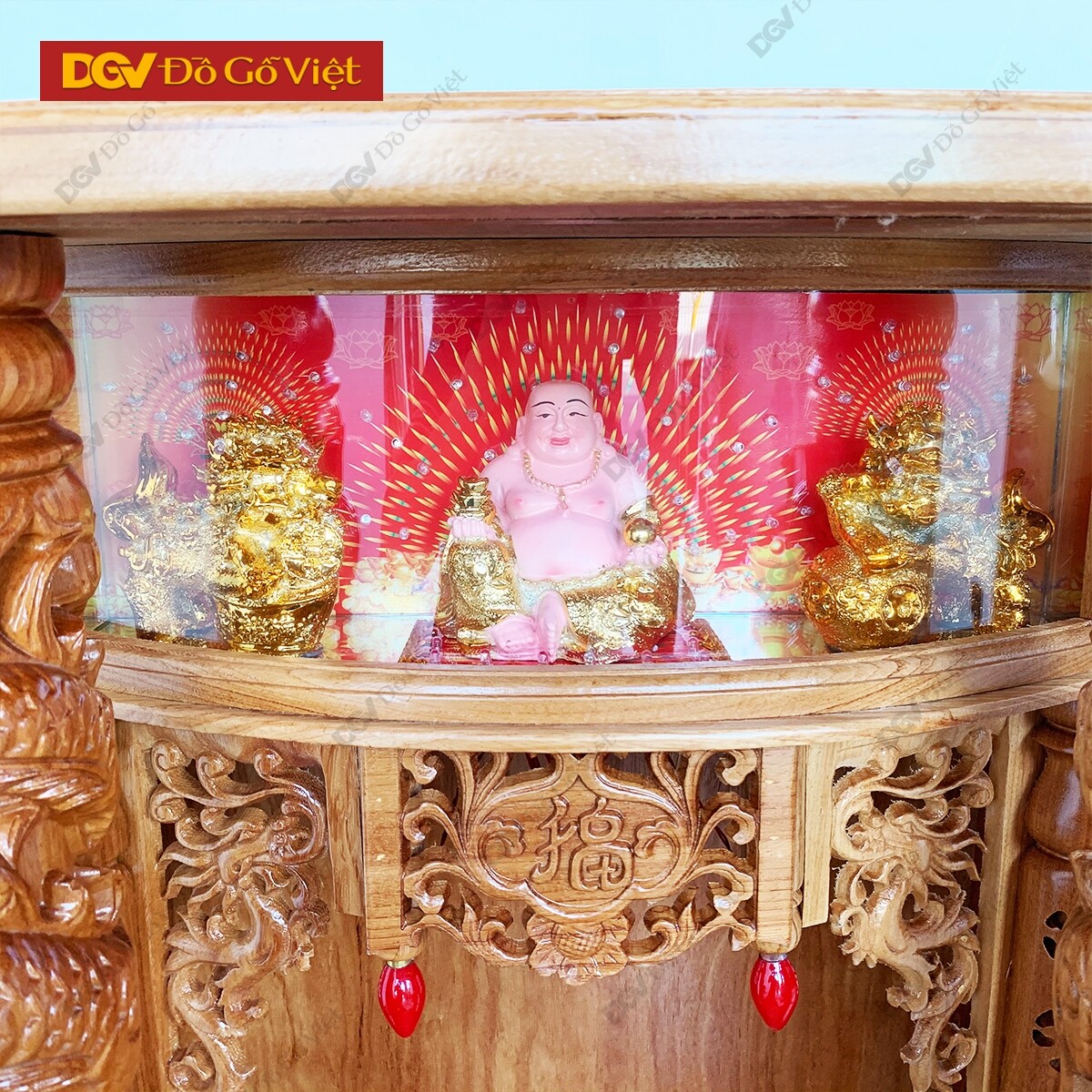 Bàn thờ thần tài cỡ lớn có hộp đèn được chạm rồng tinh xảo, các chi tiết đều được gia công hoàn mỹ gợi lên sự bền bỉ, chắc chắn cùng sang trọng mang đến khách hàng một sản phẩm cao cấp dành cho các gia chủ yêu thích sự hoàn hảo.