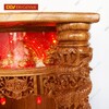 Mẫu bàn ông địa gỗ gõ đỏ được sử dụng hộp đèn nhiều màu với tượng phật Di Lặc và kỳ lân mạ vàng. Chỉ cần bằng thao tác đơn giản, hộp đèn sẽ sáng và đổi màu liên tục tạo nên vẻ đẹp hiện đại và sang trọng hơn. Điều này còn giúp ích nhiều cho các gia đình khi trời tối để tránh vô ý va chạm phải bàn thờ gây ra các vấn đề đáng tiếc.