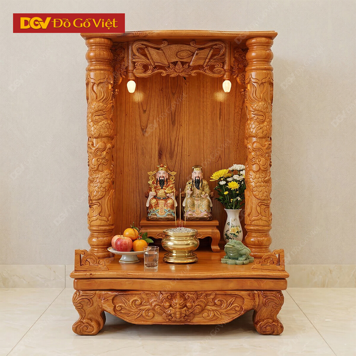 Bàn Thờ Thần Tài Gỗ Tự Nhiên Xoan Đào Cột 10 Đẹp Bền Giá Rẻ