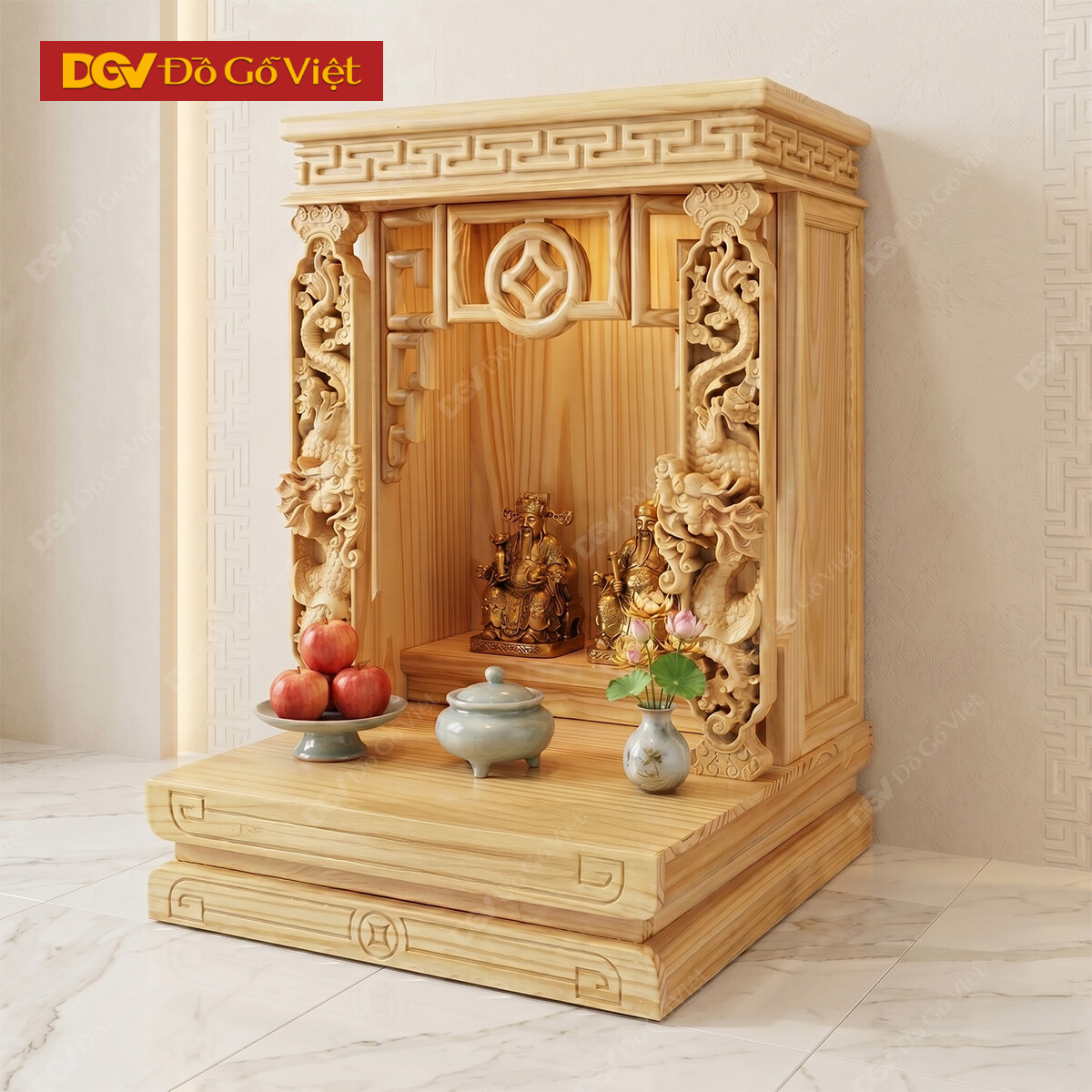 Bàn Thờ Thần Tài Ông Địa Chạm Rồng Gỗ Thông Đẹp Rẻ
