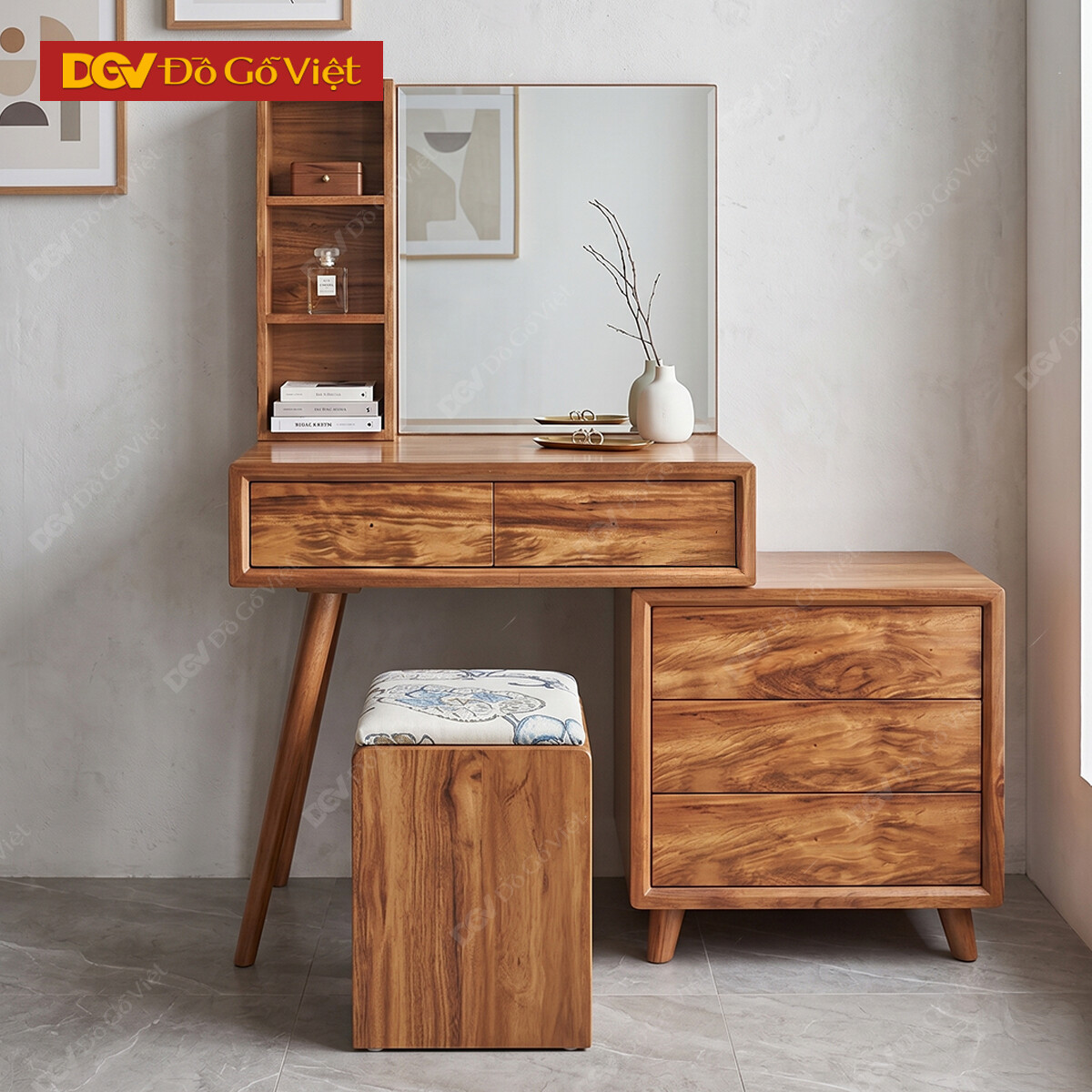 Bàn Trang Điểm Gỗ Hương Hiện Đại Gương Vuông Đẹp Giá Rẻ
